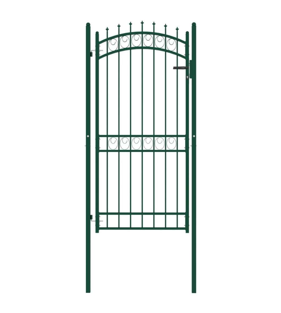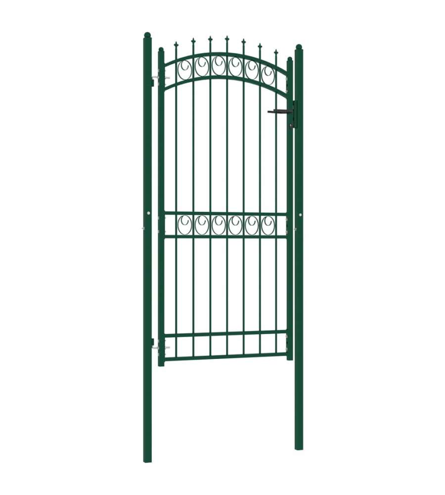 Fabbricato in acciaio robusto, il cancello d'ingresso ? verniciato a polvere per resistere a ruggine e corrosione. Grazie alle barre verticali con punte e ai robusti sostegni orizzontali di rinforzo per il telaio, il nostro cancello da giardino offre la massima sicurezza. In aggiunta, il design ad arco conferisce un tono elegante all'ingresso. ? inoltre dotato di una serratura con tre chiavi e viene fornito con due pali robusti, dotati di resistenti cerniere, per una facile installazione.