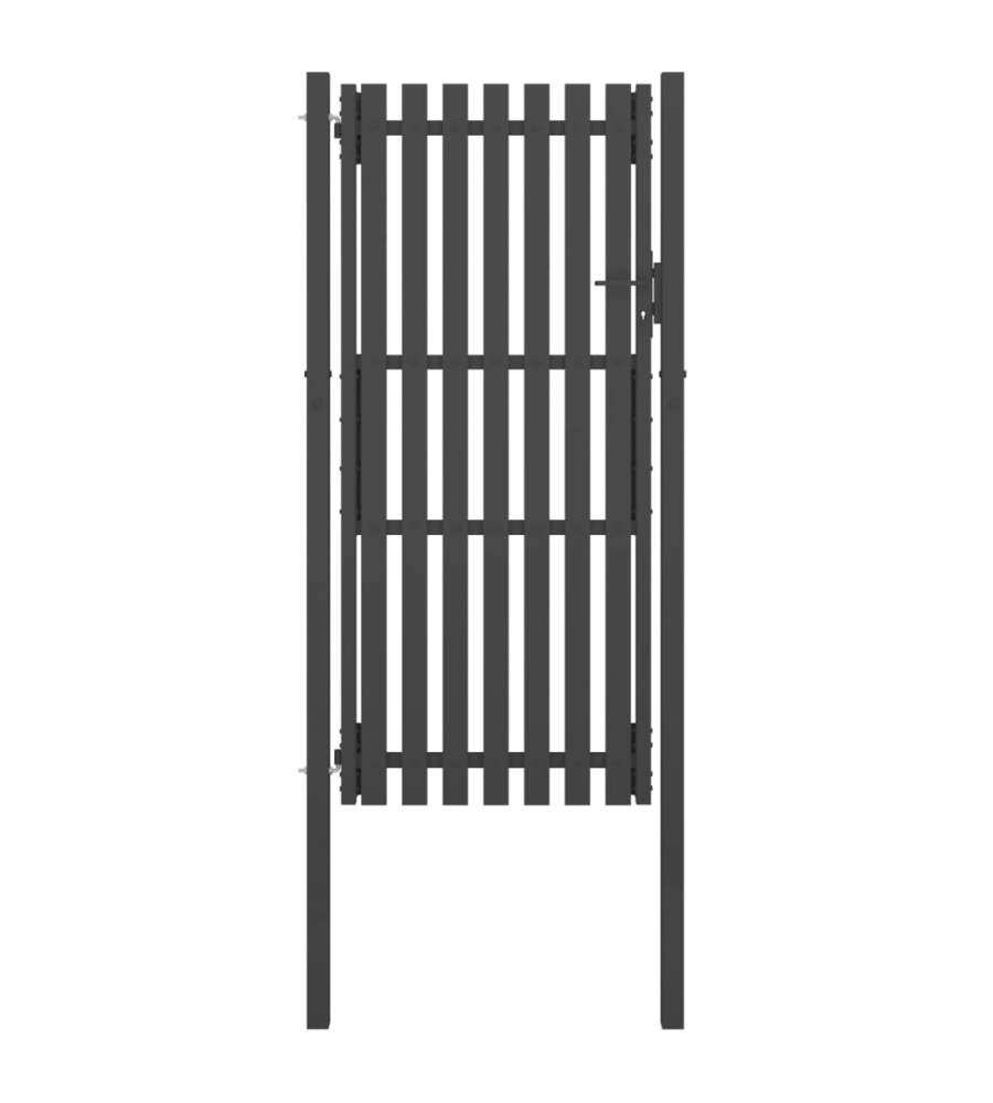Grazie al suo telaio in tubo piatto rinforzato, il nostro cancello da giardino offre un alto grado di sicurezza, mentre forma un favoloso ingresso sulla vostra propriet?. Il cancello ? realizzato in acciaio resistente e verniciato a polvere contro ruggine e corrosione. Questo cancello di recinzione ? dotato di un sistema di bloccaggio e ? dotato di due paletti robusti con cerniere resistenti per una facile installazione.