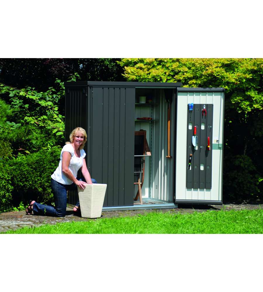 Con un armadio per attrezzi Biohort è possibile riporre attrezzi da giardino, barbecue, mobili da giardino e simili in modo protetto dall'acqua piovana e a prova di furto.Portata: