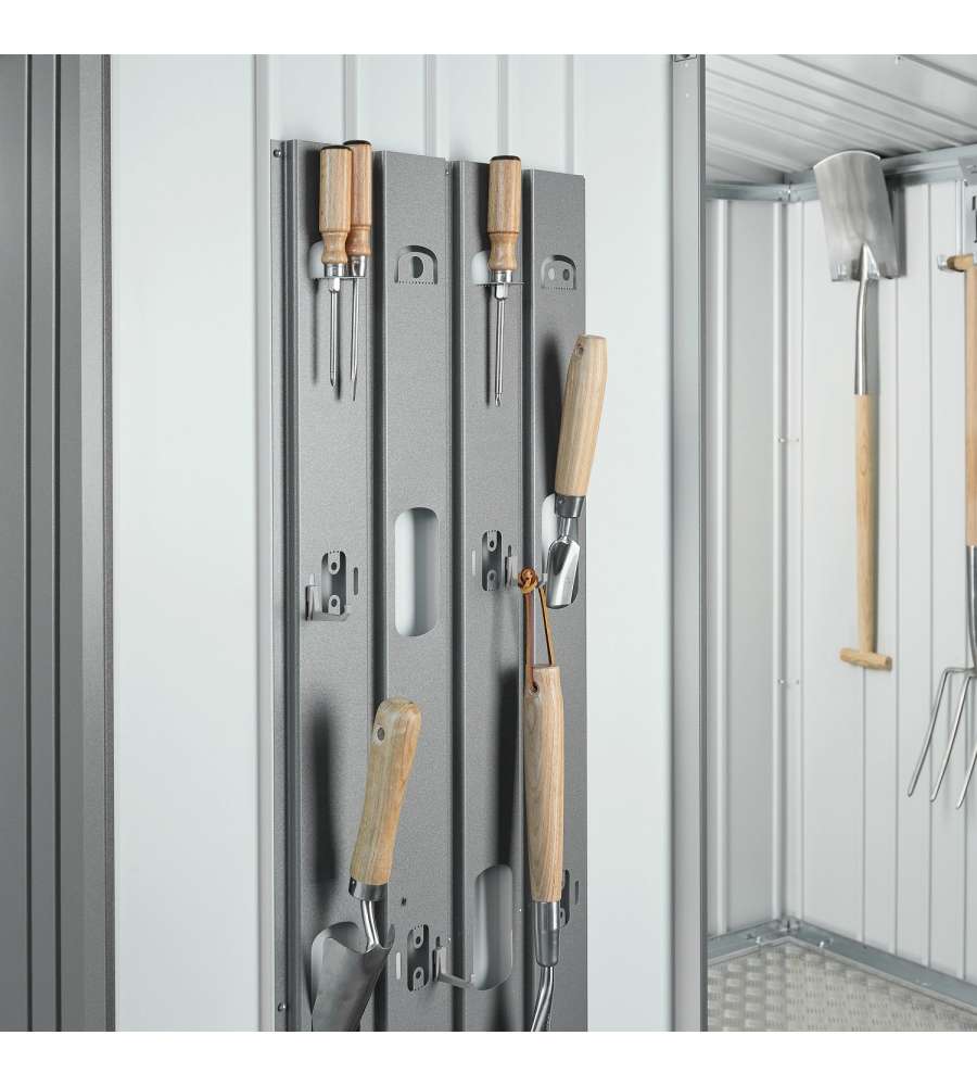 2 ripiani, 4 ganci, pannello portautensiliCaratteristiche: