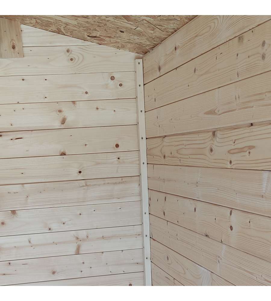 PORTA SINGOLA CIECA A BATTENTE + FINESTRA FRONTALE; falde tetto in pannello OSB3 spessore 12mm, copertura con guaina ardesiata grigia da 3 mm; pavimento in OSB3 spessore 12mm con listelli d'appoggio impregnati in autoclave;Certificazioni: