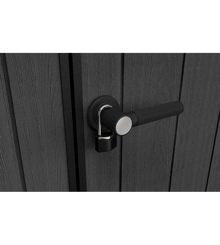 La Keter Signature Walnut 759/975 è una soluzione per esterni progettata per dare un tocco elegante al giardino e creare uno spazio aggiuntivo pratico e ordinato. Il suo rivestimento in Deco Coat, una resina che riproduce l’aspetto del legno, coniuga un elevata solidità e un aspetto elegante. Questo modello si caratterizza per un interno ampio, una notevole resistenza agli agenti atmosferici e una progettazione che combina estetica e affidabilità. La struttura è composta da pannelli in resina a doppio strato spessi 20 mm, rinforzati da inserti metallici. Il tetto, anch’esso irrobustito, è progettato per reggere fino a 150 kg/m² di carico nevoso e resistere a venti fino a 145 km/h, offrendo affidabilità in qualsiasi stagione. La zona interna risulta luminosa grazie a due grandi finestre e a un lucernario che diffonde la luce naturale, migliorando il comfort visivo durante l’utilizzo quotidiano. La ventilazione integrata mantiene un ambiente ideale per la conservazione degli attrezzi, mentre il pavimento rialzato, progettato per sostenere anche carichi importanti come barbecue, mobili o tagliaerba, garantisce una base solida e protetta dall’umidità e dallo sporco. Inoltre, l’altezza del soffitto consente un'ottima libertà di movimento, fondamentale per organizzare oggetti ingombranti. La doppia porta è provvista di maniglia predisposta per l’uso di un lucchetto (non incluso), permettendo di mettere al sicuro ciò che si conserva all’interno. L’assemblaggio è semplice e non richiede attrezzi particolari, rendendo la casetta installabile in tempi rapidi anche da chi non è esperto. È inoltre possibile scegliere dove collocare porte e finestre, posizionandole sul lato lungo o corto in base allo spazio disponibile e alle esigenze del proprio giardino. Un ulteriore vantaggio è la totale assenza di manutenzione, che consente di mantenere il giardino ordinato senza interventi periodici. Optare per la Signature Walnut 759/975 significa scegliere una struttura durevole, affidabile e funzionale, perfetta per chi vuole creare un’area esterna protetta, ordinata e sempre pronta all’uso.