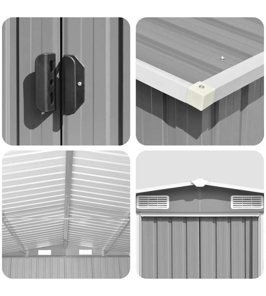 Il capanno da giardino vidaXL è la soluzione perfetta per chi cerca uno spazio sicuro e protetto per riporre attrezzi e mobili da giardino. La sua robusta struttura in acciaio zincato garantisce una lunga durata, mentre la finitura verniciata a polvere lo rende resistente a sporco e intemperie. Grazie alle quattro prese d'aria, questo capanno offre un'eccellente ventilazione, prevenendo la formazione di umidità all'interno. Inoltre, le doppie porte scorrevoli facilitano l'accesso, rendendo il deposito degli attrezzi semplice e veloce. Montare questo capanno è un gioco da ragazzi, grazie alle istruzioni dettagliate incluse.