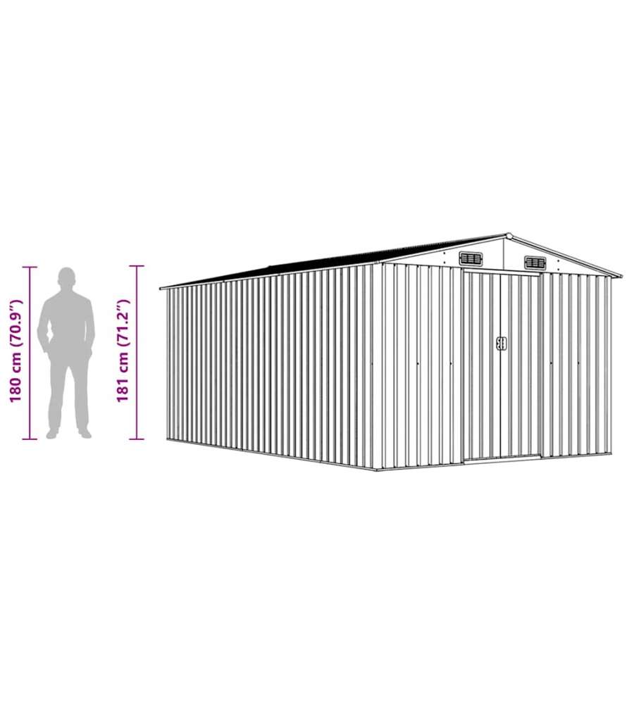 Descrizione: Capanno da giardino in metallo grigio (257x392x181 cm) ideale per riporre attrezzi e mobili da giardino. Robusto, resistente alle intemperie e con ottima ventilazione. Facile da montare!