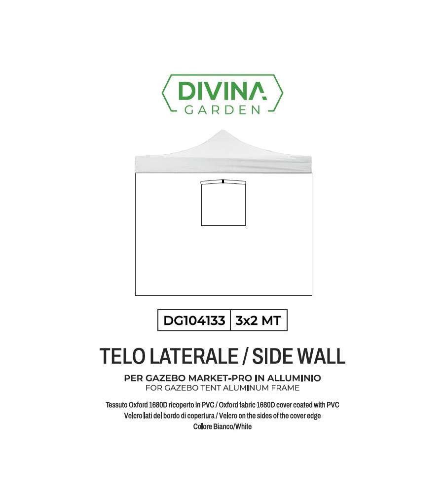 Telo laterale bianco 3x2 mt per gazebo Market-Pro, realizzato in Oxford 1680D impermeabile e resistente agli agenti atmosferici. Blocca il 99% dei raggi UV. Include finestra e velcro per un facile montaggio. Ideale per eventi e ristorazione.Uso esterno: