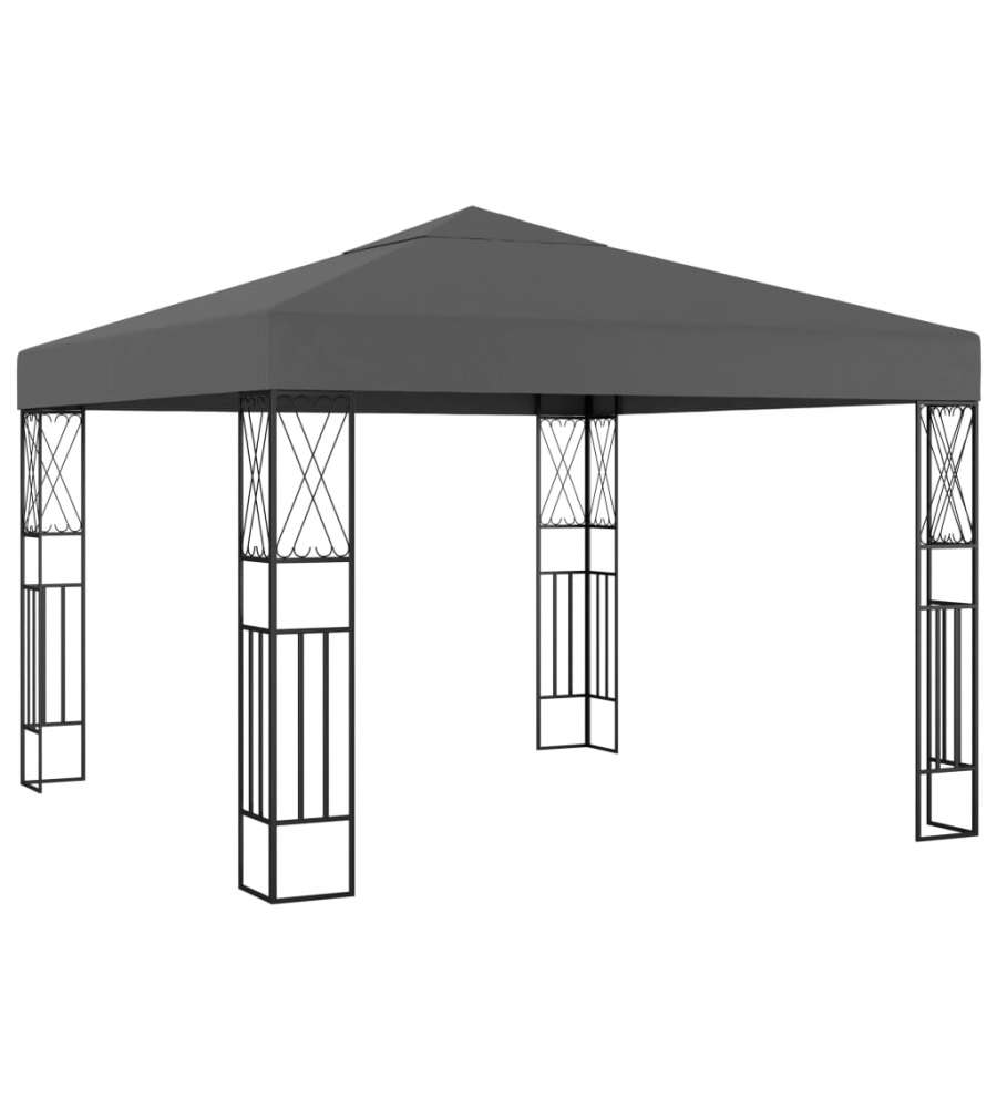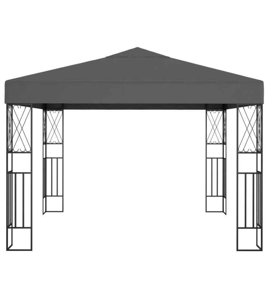 Colore: Antracite Materiale: Tessuto (100% poliestere), acciaio Dimensioni: 3x3x2,6 m (LxPxA) Tettino con rivestimento in PA Telaio con elementi decorativi a forma di croce Assemblaggio richiesto: Sì