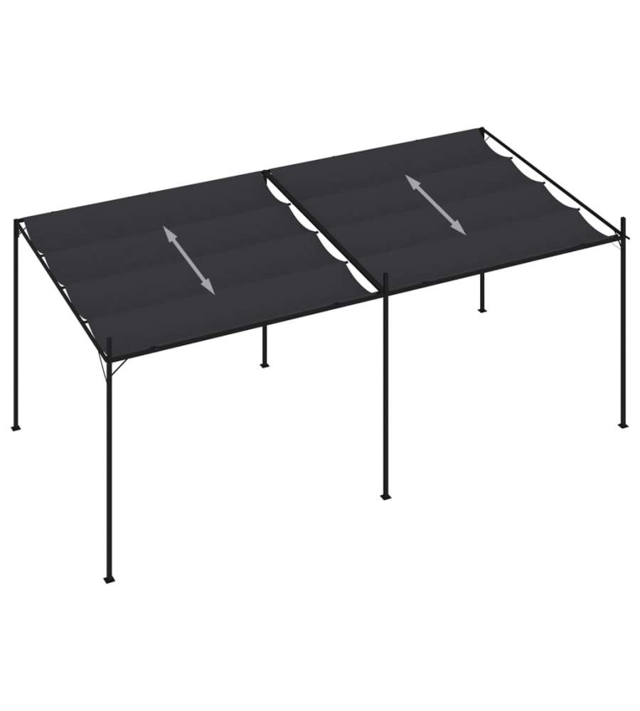 Colore: Antracite Materiale: Tessuto (100% poliestere con rivestimento PA), ferro Dimensioni complessive: 600x300x213/233 cm (LxPxA) Tetto retrattile incluso Assemblaggio richiesto: Sì