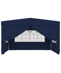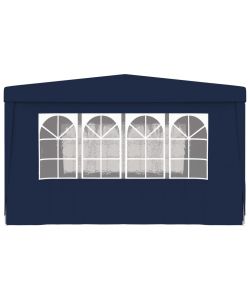 Colore: Blu Materiale: PE (100% polietilene) 90 g/mq, acciaio Dimensioni: 4x 4 x 2,75 m (L x P x A) Altezza della linea di gronda dal suolo: 2 m Con pareti laterali Resistente all'acqua e ai raggi UV Materiali di montaggio inclusi