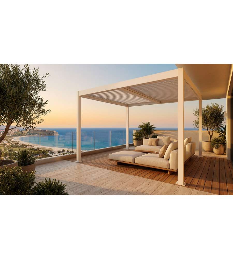 Descrizione: Struttura e lamelle in alluminio, ideale per godere del tuo spazio esterno con stile e funzionalità.
