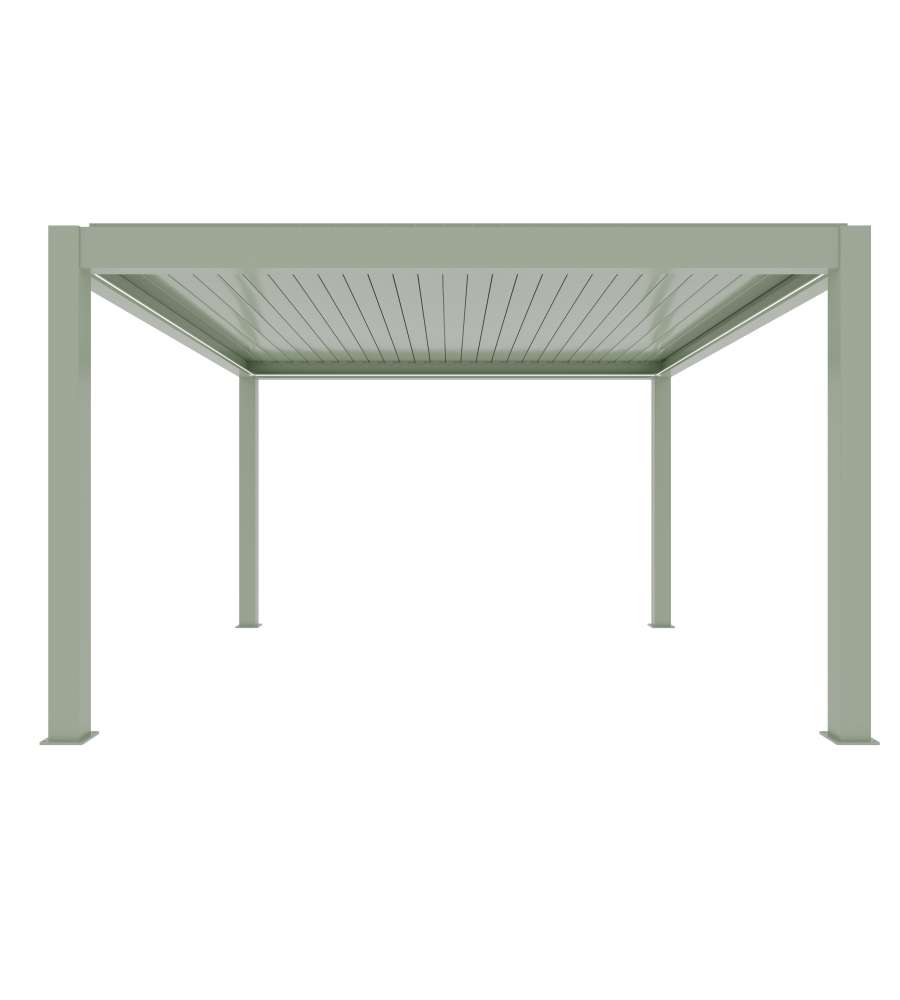 Pergola bioclimatica motorizzata 4x4 m in alluminio verniciato beige. Struttura robusta con lamelle a doppio strato per ottimizzazione luce e ventilazione. Illuminazione LED e telecomando per facile gestione. Sezione palo 15x15 mm.Materiale struttura: