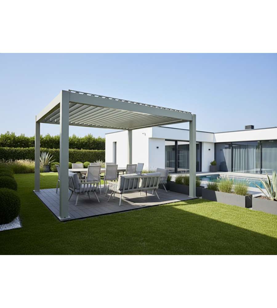 La Pergola Bioclimatica Ulivo rappresenta la soluzione ideale per chi desidera godere degli spazi esterni in totale comfort. Grazie alla sua struttura in alluminio verniciato a polvere, è altamente resistente agli agenti atmosferici, garantendo una lunga durata nel tempo. Le lamelle a doppio strato non solo ottimizzano la luce, ma consentono anche una ventilazione naturale, creando un'atmosfera piacevole anche nelle giornate più calde. L'illuminazione LED integrata sulle travi perimetrali offre un'illuminazione romantica e funzionale, perfetta per le serate all'aperto. Inoltre, il telecomando permette di gestire facilmente le lamelle, adattando la copertura alle tue esigenze in un attimo.