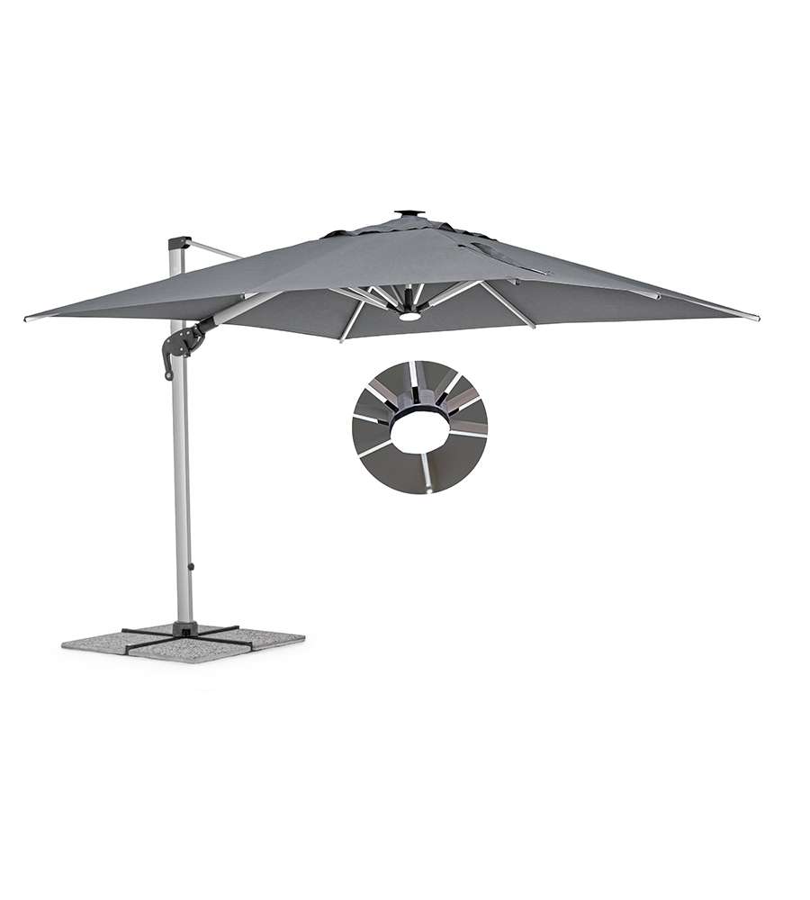 Scegli la bellezza di un ombrellone giardino con led, con la qualit? di un telo in poliestere 250 gr caratterizzato dalla presenza di camino antivento.