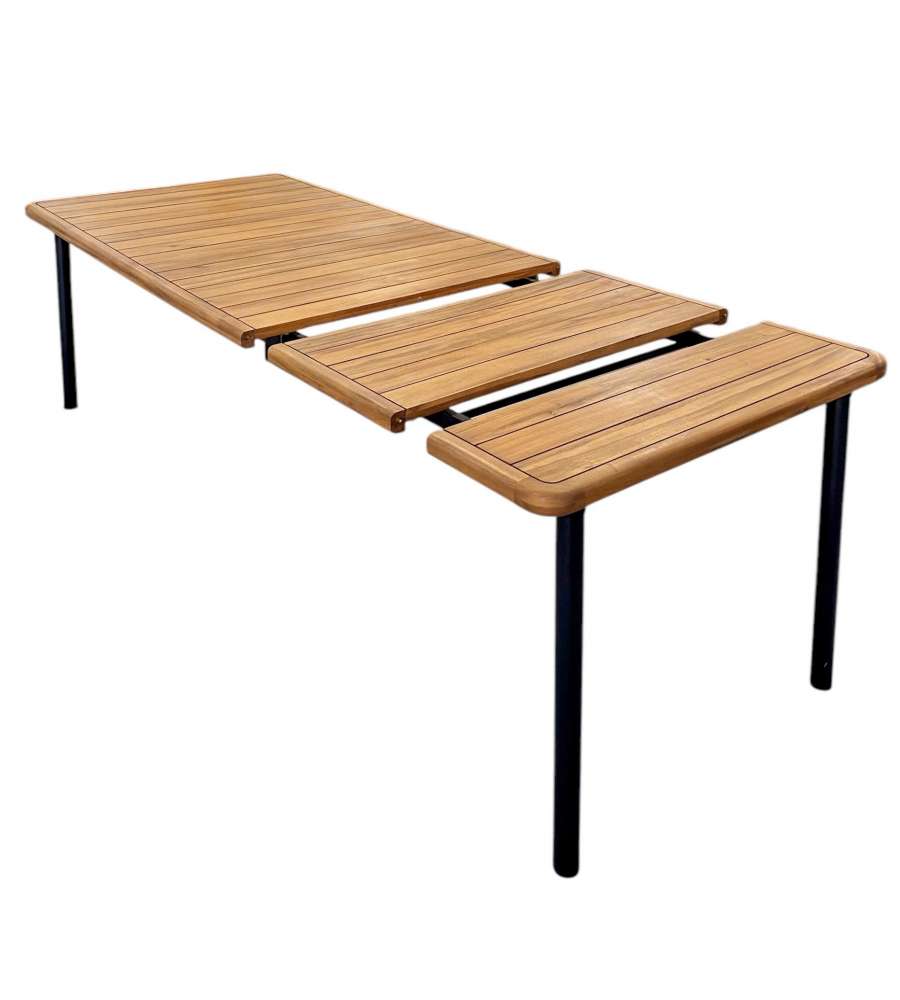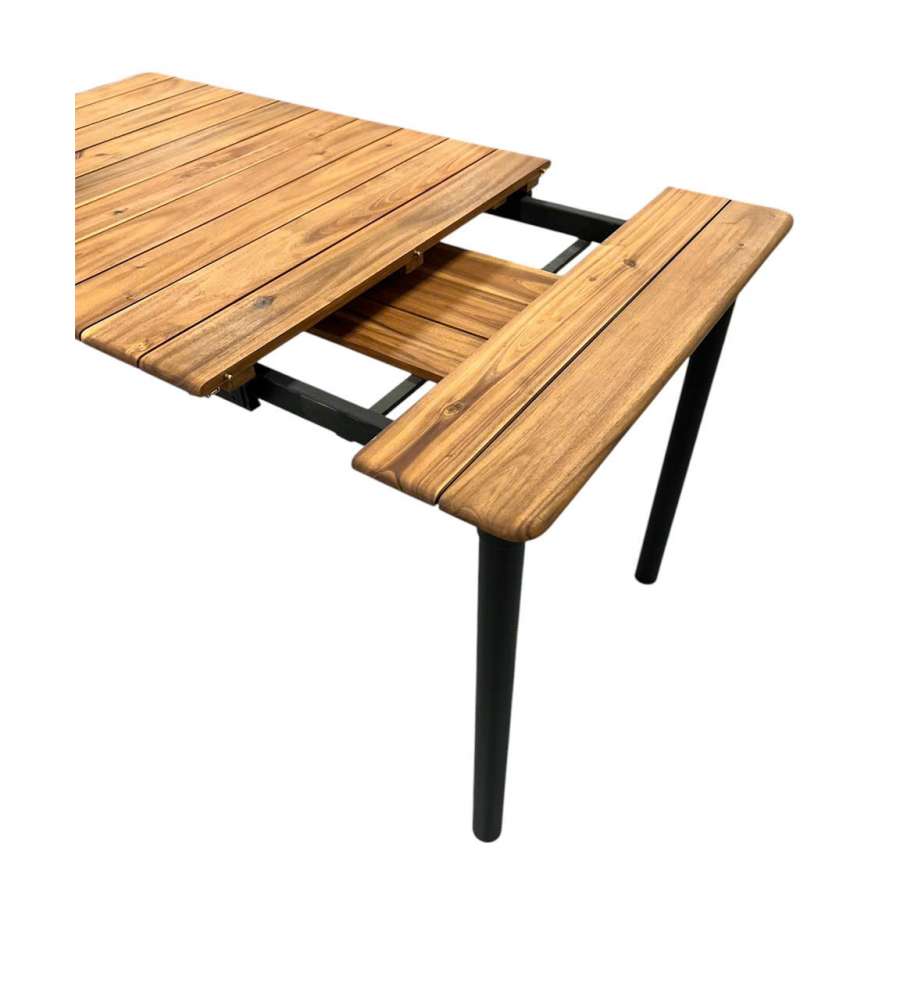 Tavolo allungabile in acacia oliata, dimensioni 150/200x90x76 cm. Struttura in ferro verniciato antracite, ideale per esterni. Perfetto per pranzi all'aperto. Resistente e elegante, per arredare con stile il tuo spazio outdoor.Materiale struttura: