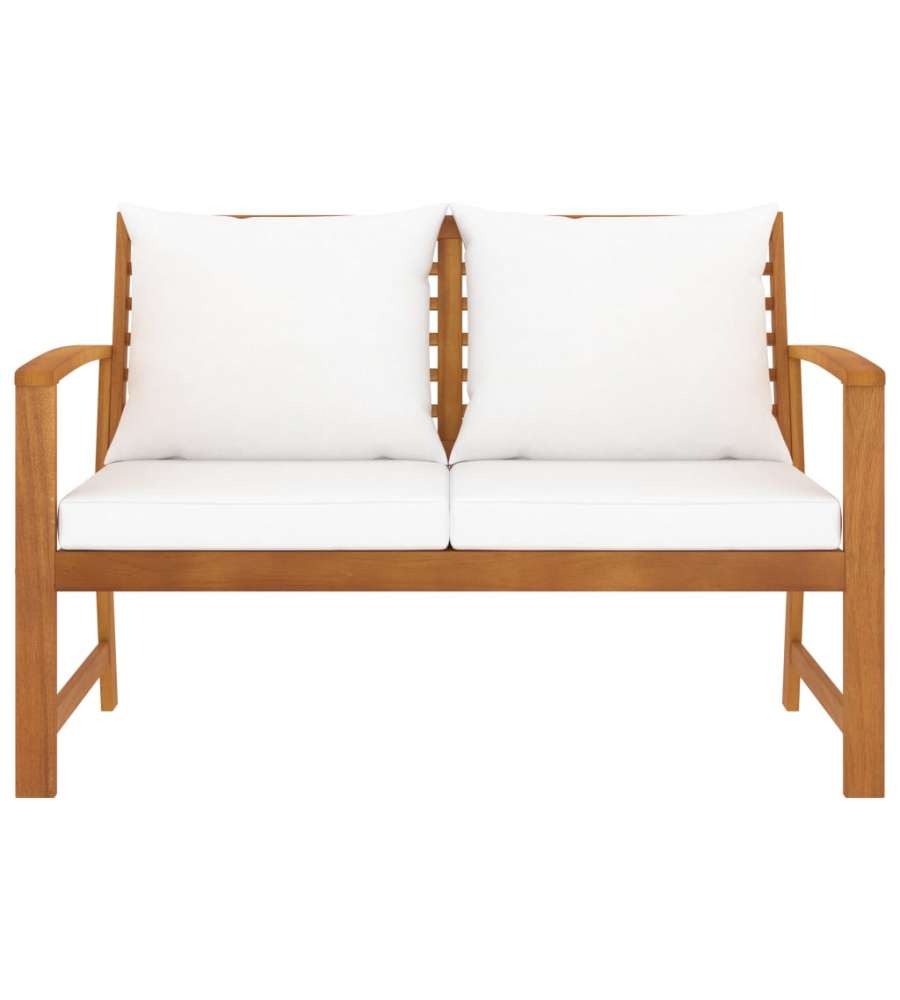 La panca ? realizzata in legno massello di acacia di alta qualit?, un legno duro tropicale, resistente agli agenti atmosferici e altamente durevole. Grazie alla finitura a olio, il set di mobili da giardino ha un colore caldo ed ? facile da pulire e mantenere. Inoltre, la consegna include cuscini di seduta e schienale con imbottitura spessa per il massimo comfort di seduta.