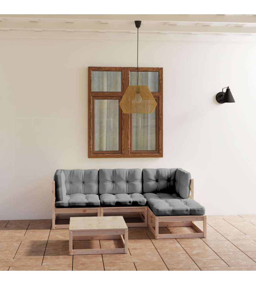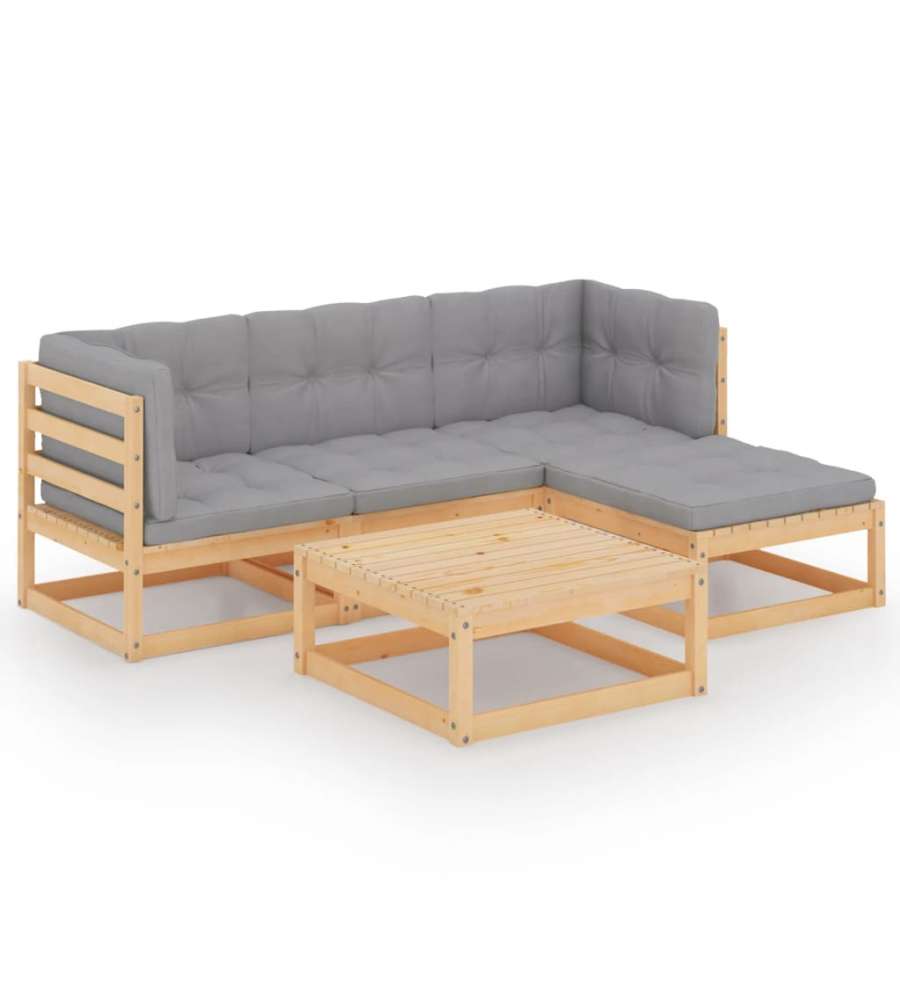 Il set da giardino ? realizzato in legno massello di pino, il che lo rende robusto e stabile. I cuscini aggiungono comfort in pi?. Potete combinarlo con altri segmenti modulari per personalizzare la configurazione del vostro salottino da giardino!