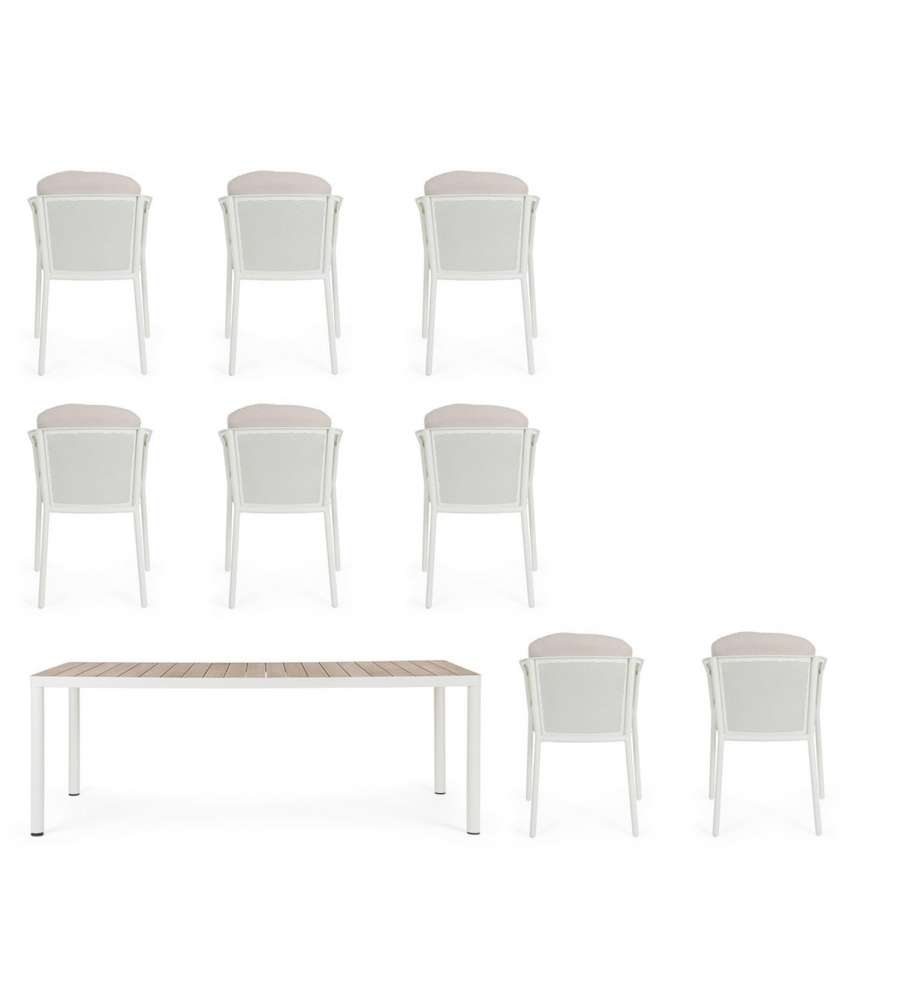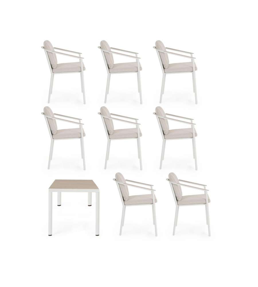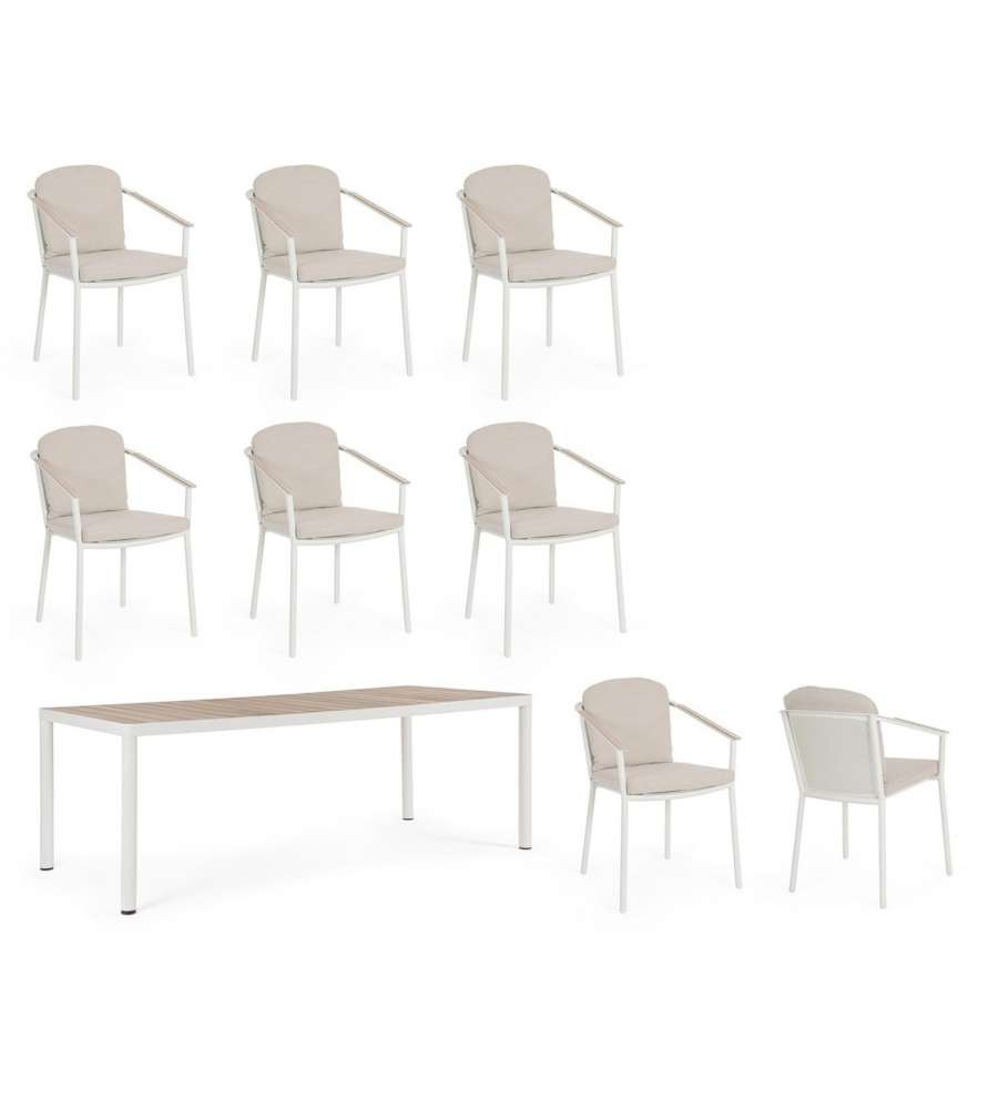 Descrizione: Scopri il Set Tavolo e 8 Sedie Ulises di Bizzotto: design moderno e resistente, ideale per esterni. Struttura in alluminio, cuscini sfoderabili idrorepellenti e sedie impilabili. Comfort e stile per ogni occasione!