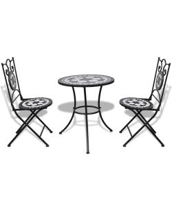 Aggiungi un tocco romantico al tuo giardino, terrazzo o balcone con questo set bistro con mosaico. Sar? molto piacevole chiacchierare con gli amici o bere insieme qualcosa rilassandosi su questo set di sedie decorative e funzionali da giardino.