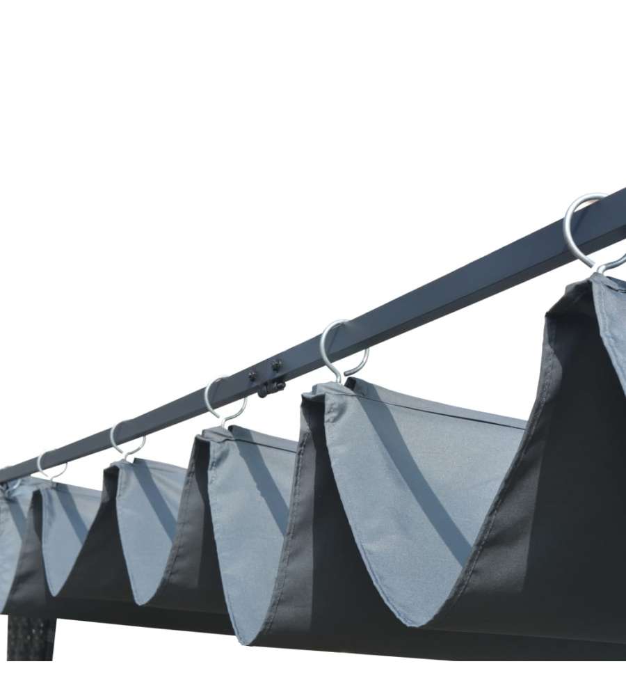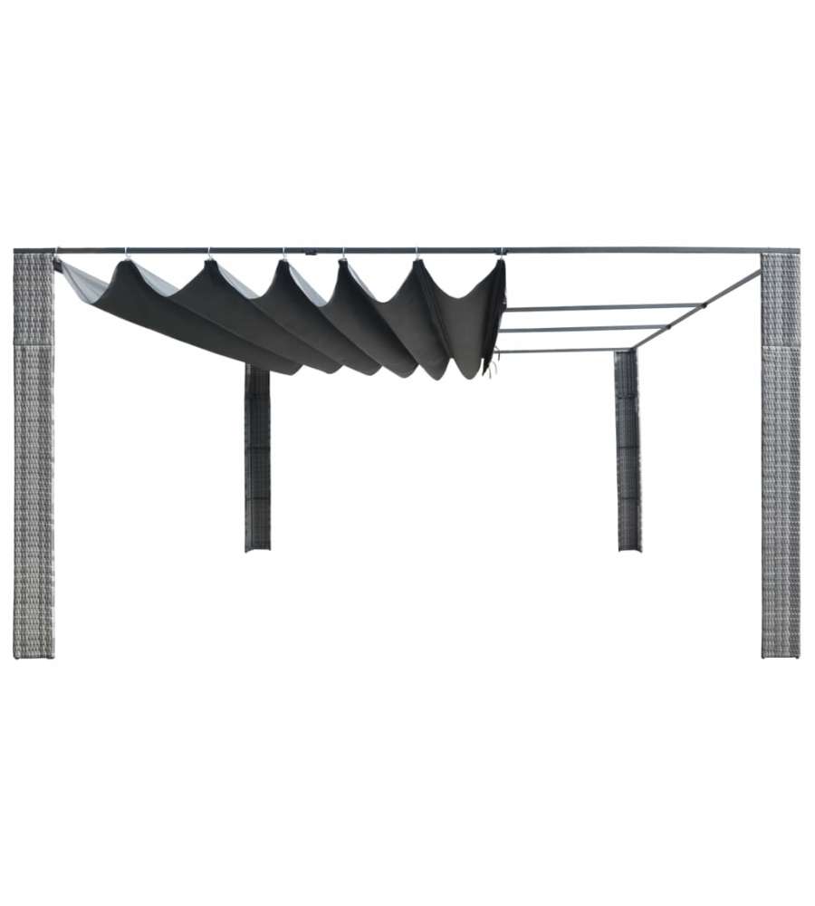 Grazie al rattan PE, questo gazebo ? facile da pulire, robusto e adatto per l'uso quotidiano all'aria aperta. I telai in acciaio verniciato a polvere rendono il gazebo robusto e stabile. Il tetto mobile offre una buona protezione contro sole e pioggia, impedendo cos? di rovinare momenti felici durante banchetti con la propria famiglia, barbecue, picnic pomeridiani e feste di compleanno.