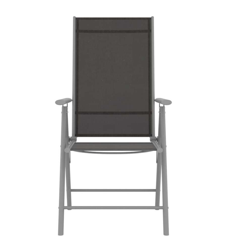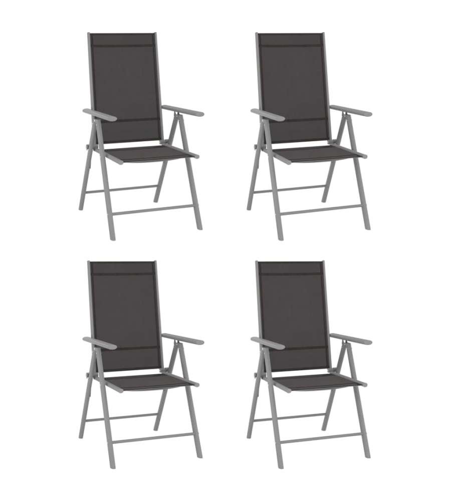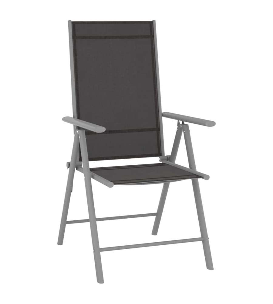 Colore: Nero e argento Materiale: Alluminio, textilene Dimensioni: 54x73x107 cm (LxPxA) Schienale regolabile in 7 posizioni Design pieghevole Assemblaggio richiesto: Sì La consegna include: 4 Sedie da giardino