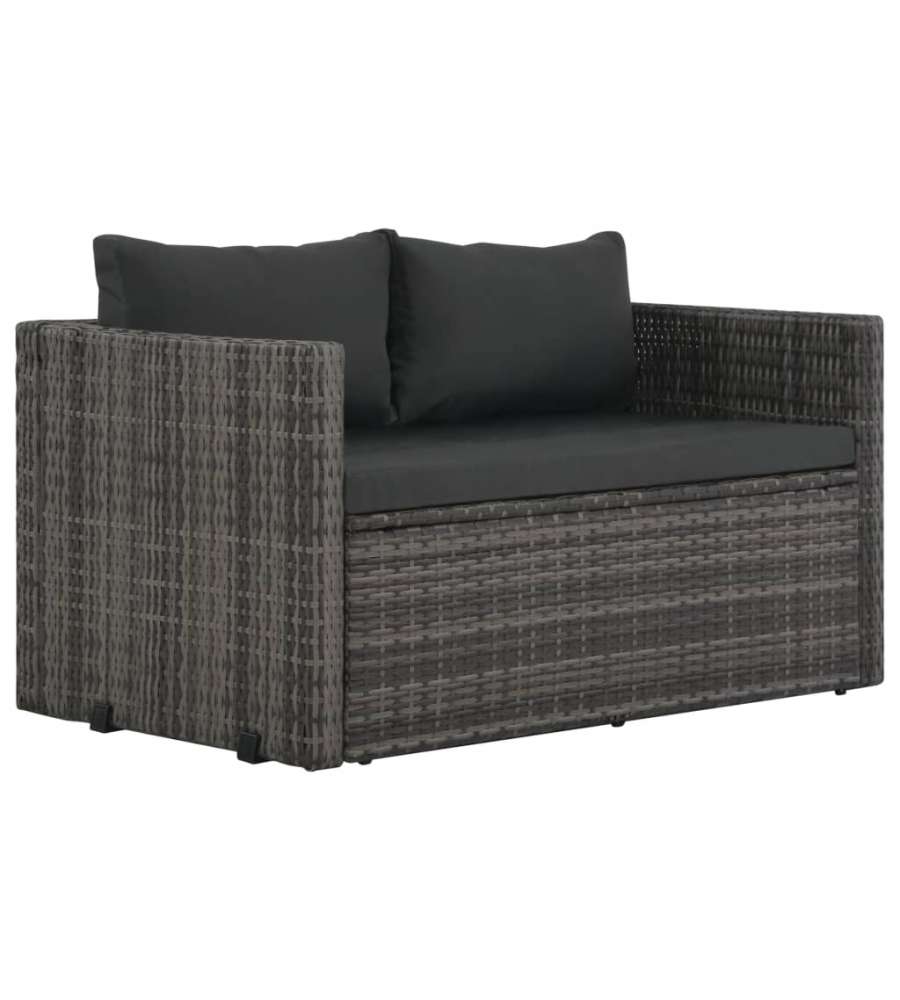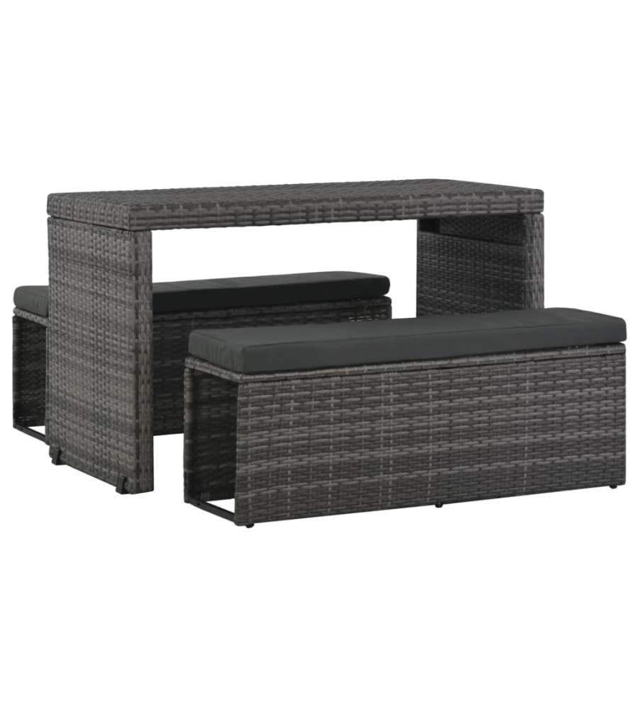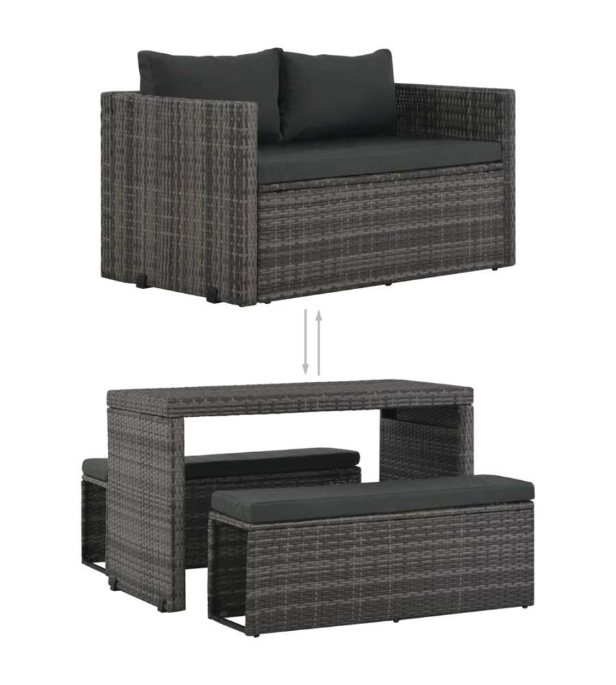 Questo versatile set da pranzo in polyrattan ? composto da 1 tavolo, 2 panche, 2 cuscini e 2 cuscini per seduta. Creer? un'elegante area salotto nel giardino o nel patio. Pu? anche essere trasformato in un divano.