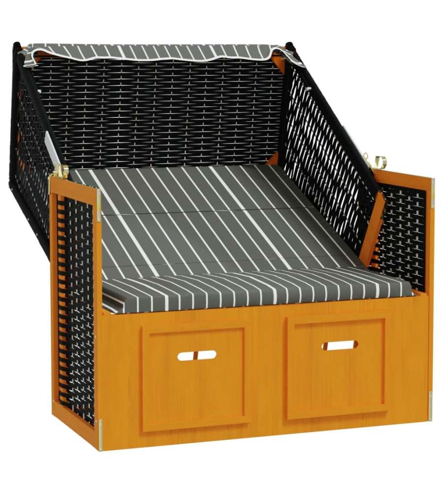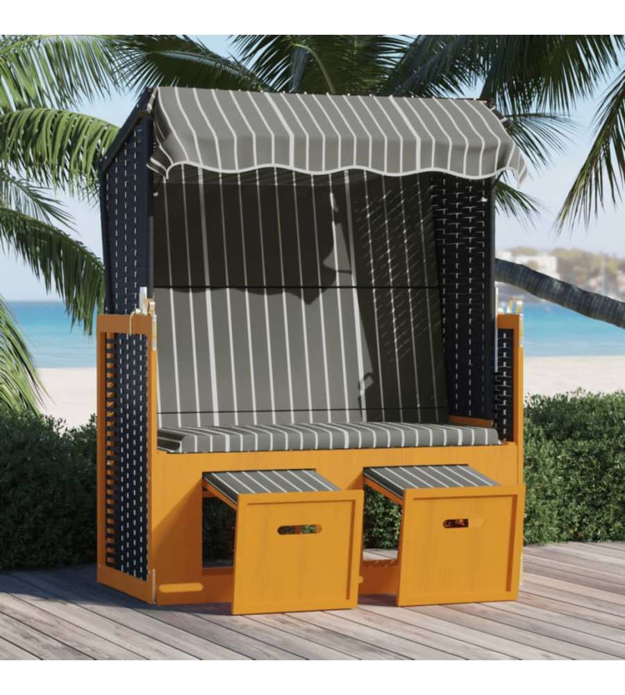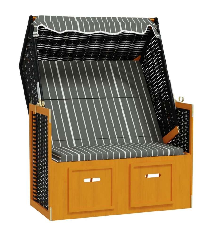 Strandkorb Tettoria Polyrattan e Legno Massello Nero e Grigio