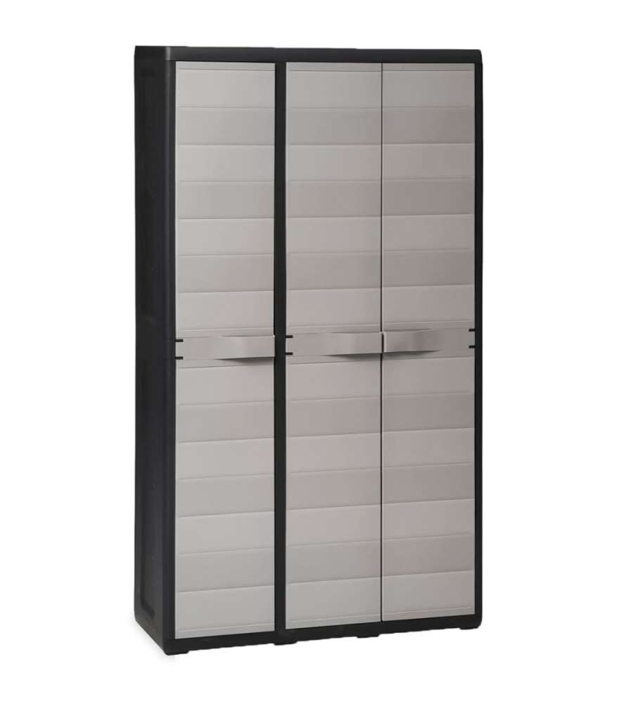 Colore: Nero e grigio Materiale: Polipropilene (PP) Dimensioni: 97 x 38 x 171 cm (L x P x A) Con 3 porte e 4 ripiani regolabili ventilati Ogni ripiano ha un blocco di sicurezza (per evitare che si muova)Altro 8: