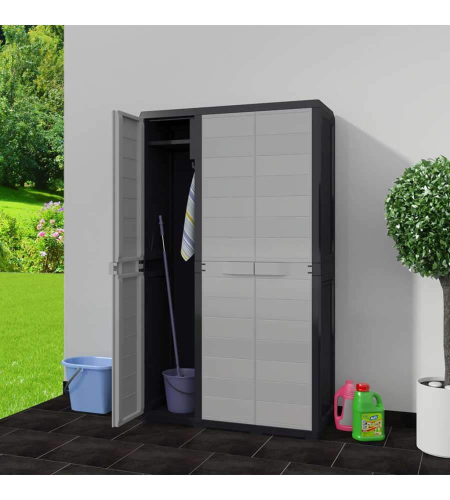 Questo armadietto certificato T?V-GS ? realizzato in robusto e resistente polipropilene (PP). Questo prodotto, molto spazioso, ? dotato di ripiani ventilati la cui altezza pu? essere variata per accogliere oggetti di dimensioni diverse. L'armadietto da giardino pu? essere chiuso con un lucchetto per una maggiore sicurezza (il lucchetto non ? incluso).