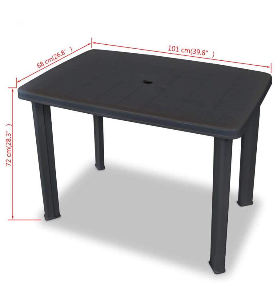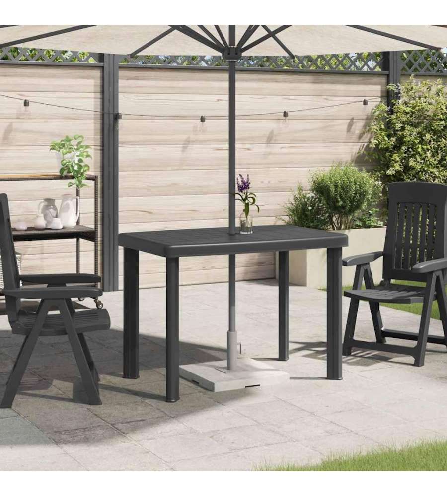 Tavolo da giardino in polipropilene antracite, dimensioni 126x76x72 cm. Leggero (8,4 kg) e resistente, ideale per esterni. Facile da pulire e montare, design classico adatto a giardini e verande. Include guida per assemblaggio.Uso esterno: