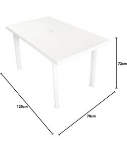 Descrizione: Tavolo rettangolare in polipropilene. Misura 126 x 76 x 72 h cm. Colore Bianco.