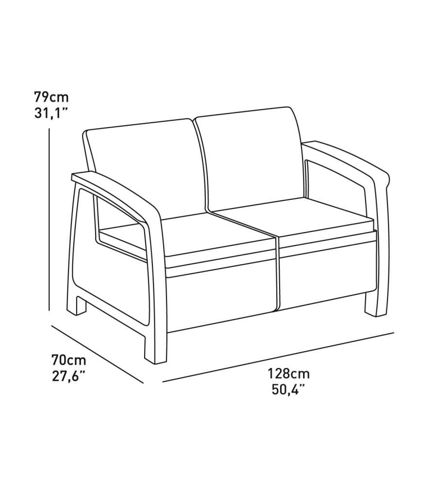 Descrizione: Scopri il set da giardino Corfu Keter, elegante e resistente. Composto da 2 poltrone, divano e tavolino, è perfetto per esterni. Facile montaggio, cuscini inclusi, ideale per il relax all'aperto!