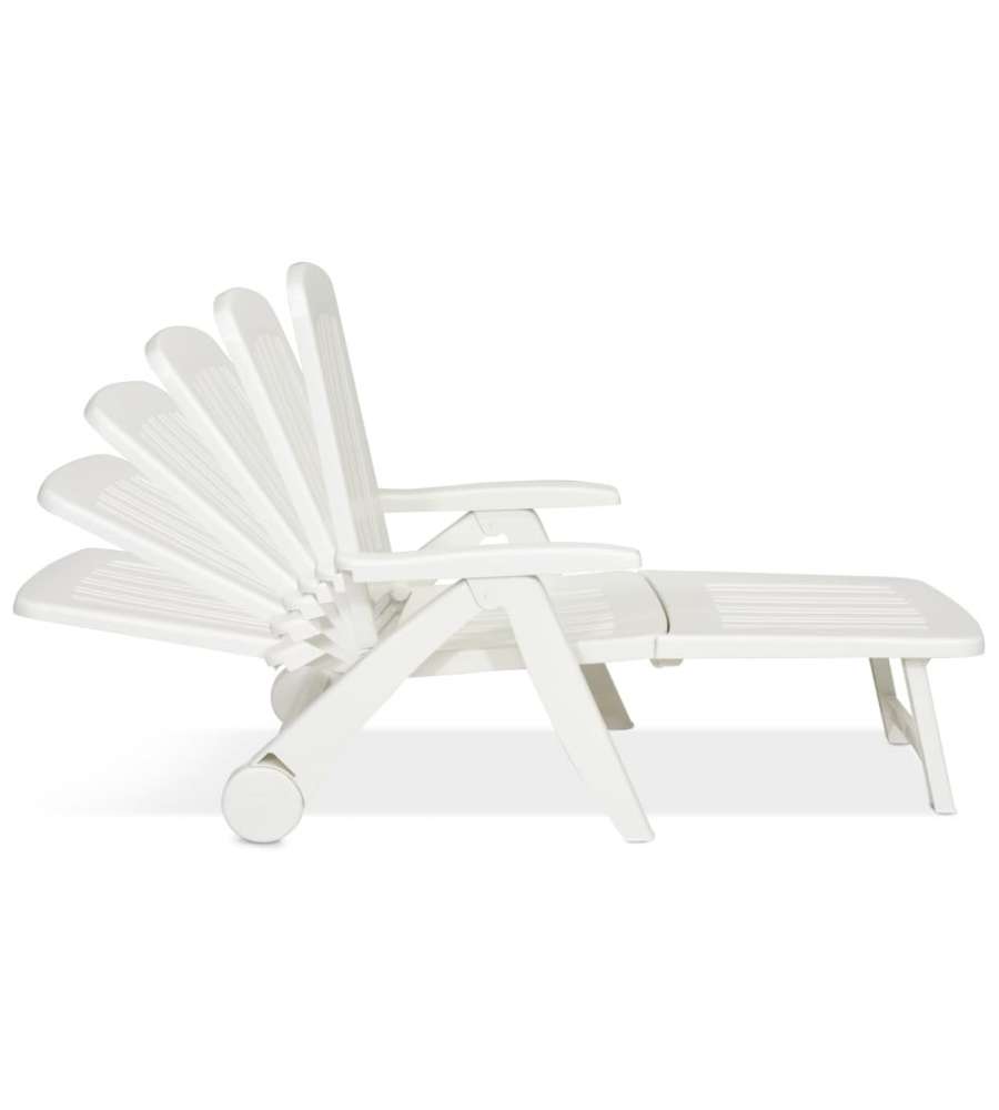 Descrizione: Scopri il lettino Cancun Domo Mea, in polipropilene bianco, pieghevole e con ruote. Misure 72x190x60 cm, schienale regolabile e finitura lucida. Ideale per il relax all'aperto!