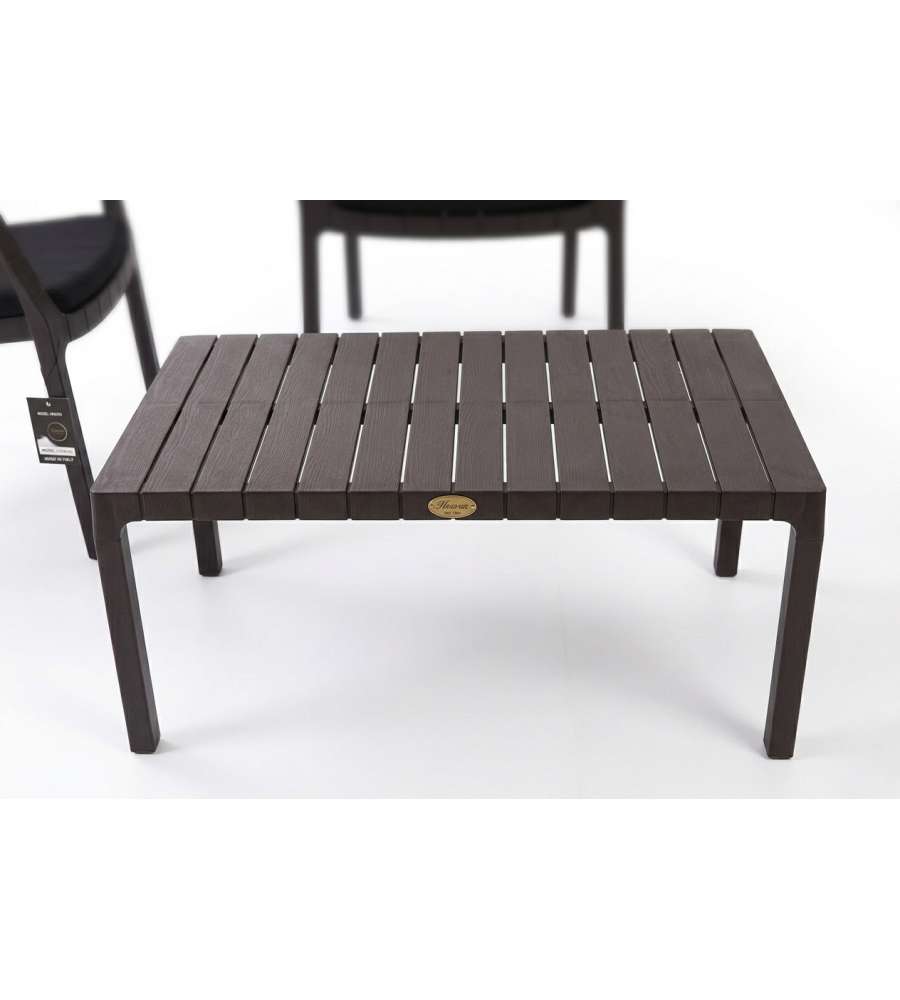 La struttura in polipropilene ad effetto legno garantisce resistenza agli agenti atmosferici, ai raggi UV e all’umidità, senza scolorirsi col tempo. I morbidi cuscini antracite sono lavabili e idrorepellenti, assicurando comfort e praticità anche nelle giornate più calde.