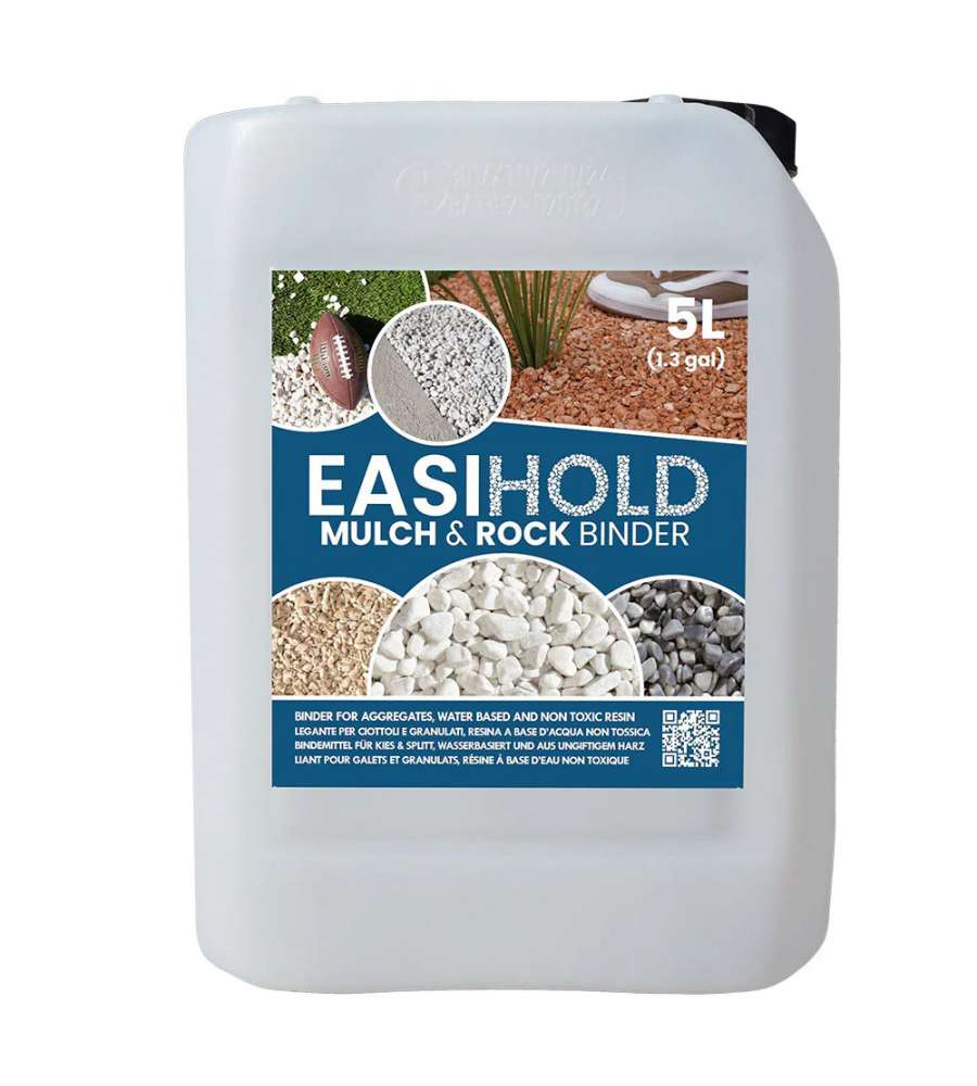 Descrizione: Easyhold Legante per Ciottoli e Aggregati di Granulati Zandobbio stabilizza ghiaie e ciottoli, creando un legame flessibile e trasparente. Ideale per vialetti e giardini, resiste a caldo e gelo.