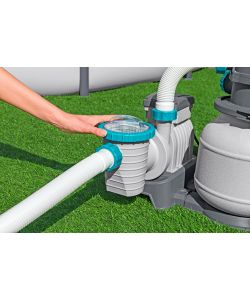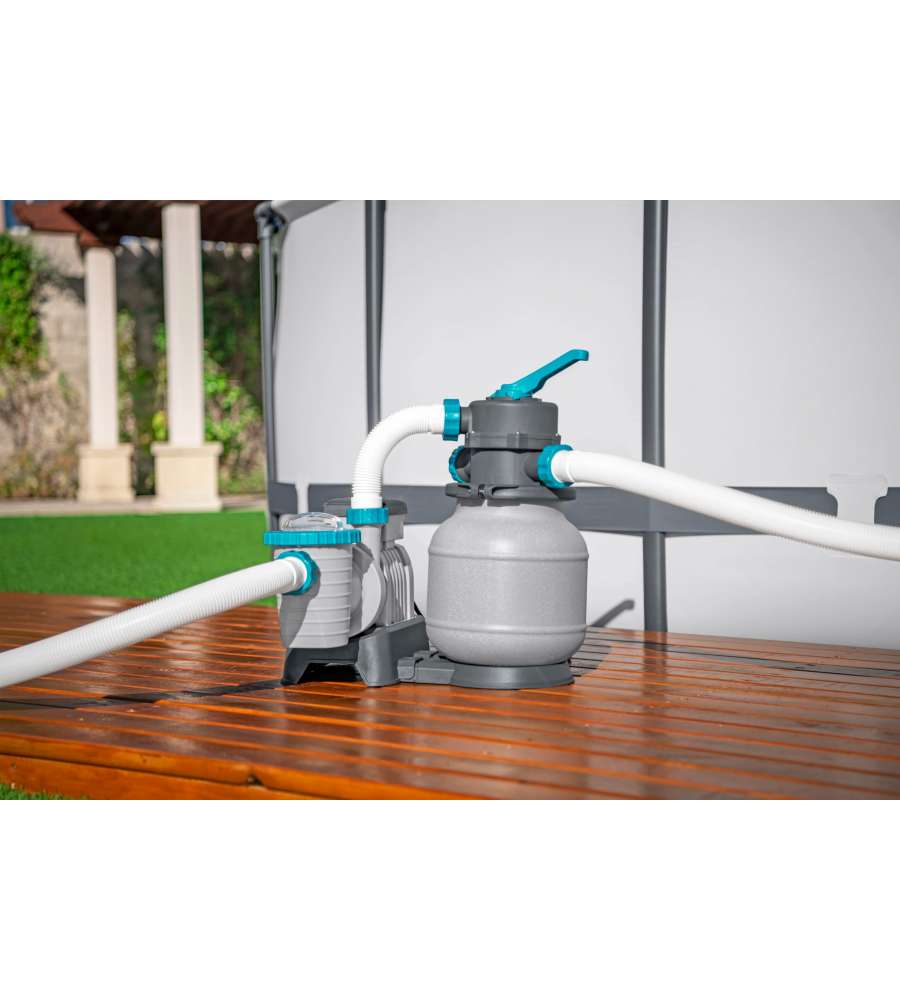 Pompa di filtraggio a sabbia Flowclear Bestway con valvola a 6 funzioni: filtrazione, contro lavaggio, risciacquo, ricircolo, svuotamento, stop. Portata 5.678 l/h.