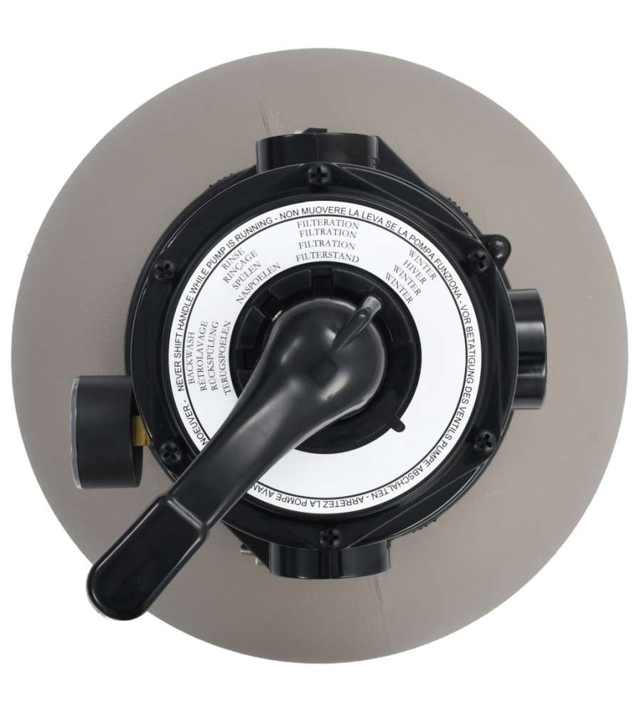 Pressione massima di esercizio: 50 PSI Filtro sabbia necessario: 27 kg (non incluso) Valvola multiporta a 4 posizioni: Filtro, controlavaggio, risciacquo e modalità invernaleDotazione: