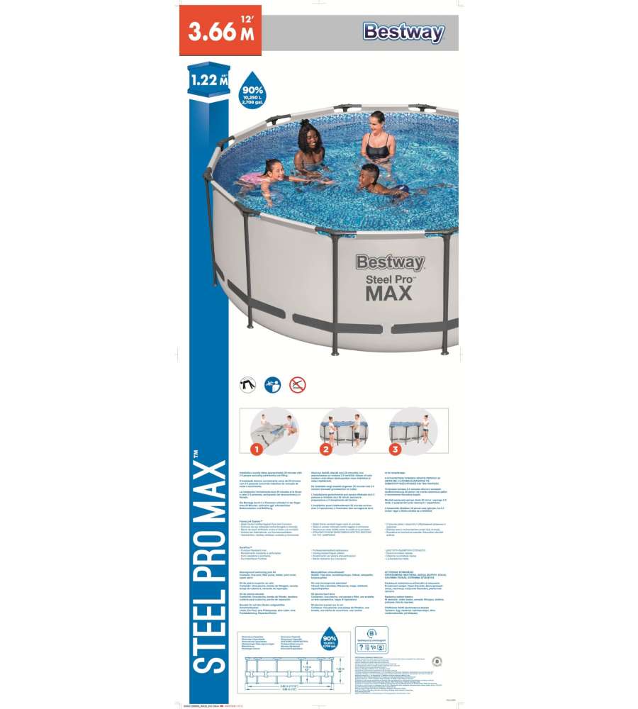 Descrizione: Scopri la piscina Bestway Steel Pro Max 366x122 cm, ideale per relax e divertimento. Struttura robusta in DuraPlus, capacità 10.250 L e pompa filtro inclusa. Perfetta per giardini e spazi esterni!