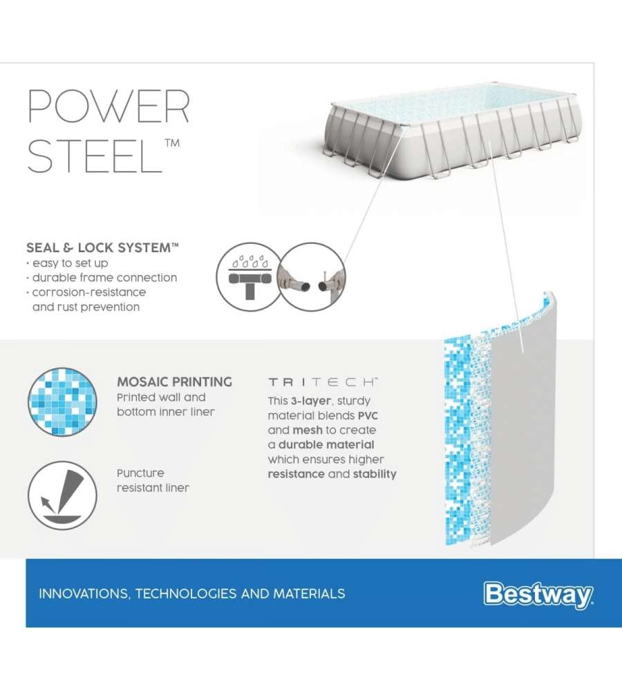 Descrizione: Scopri la piscina Bestway Power Steel, 956x488x132 cm, perfetta per divertimento estivo. Resistente, facile da montare e dotata di filtro a sabbia, scala di sicurezza e telo di copertura. Ideale per famiglie!