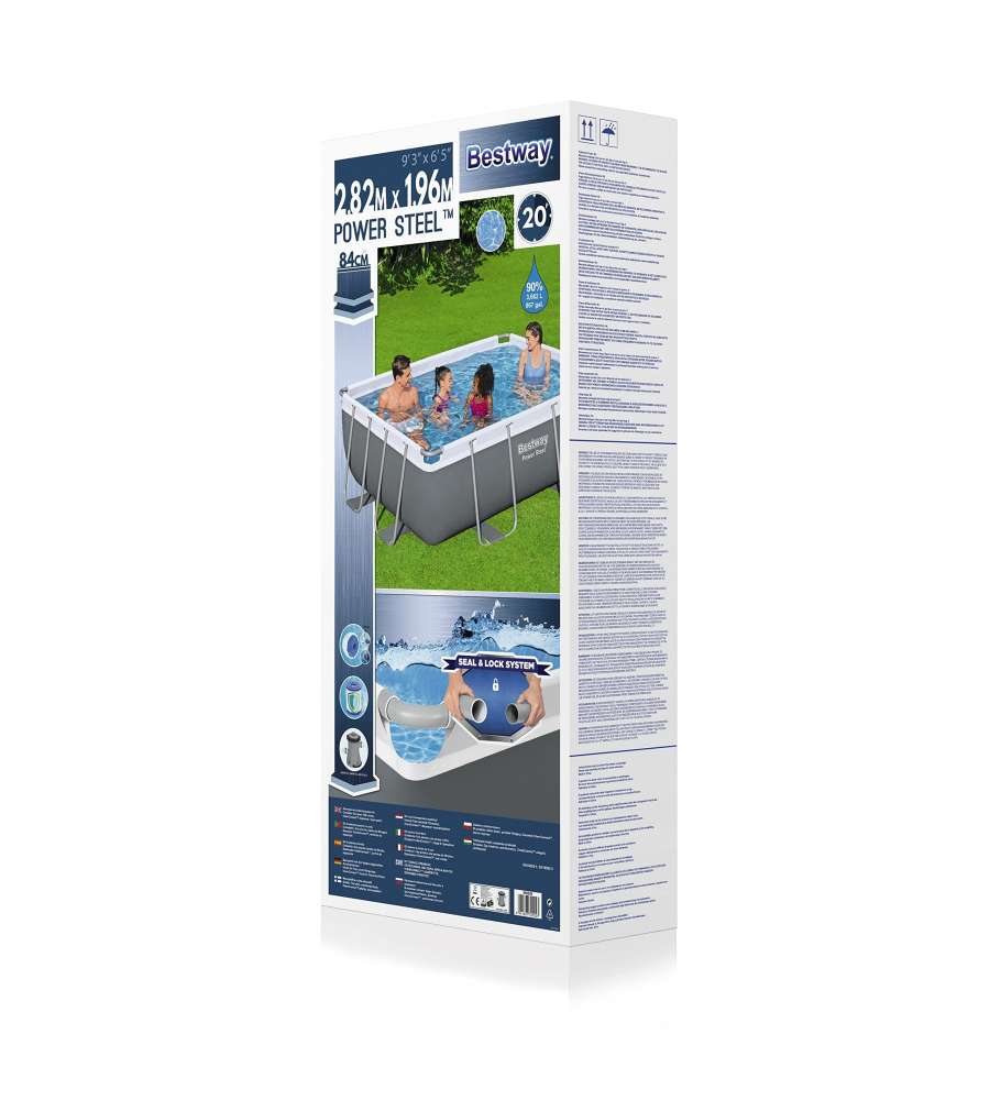 Piscina rettangolare Power Steel Frame 282x196x84 cm, struttura in acciaio anticorrosione, materiale TritechTM, include pompa filtro e cartuccia, capacità 3662 L.Capacità: