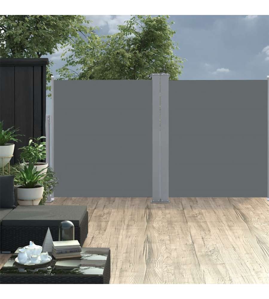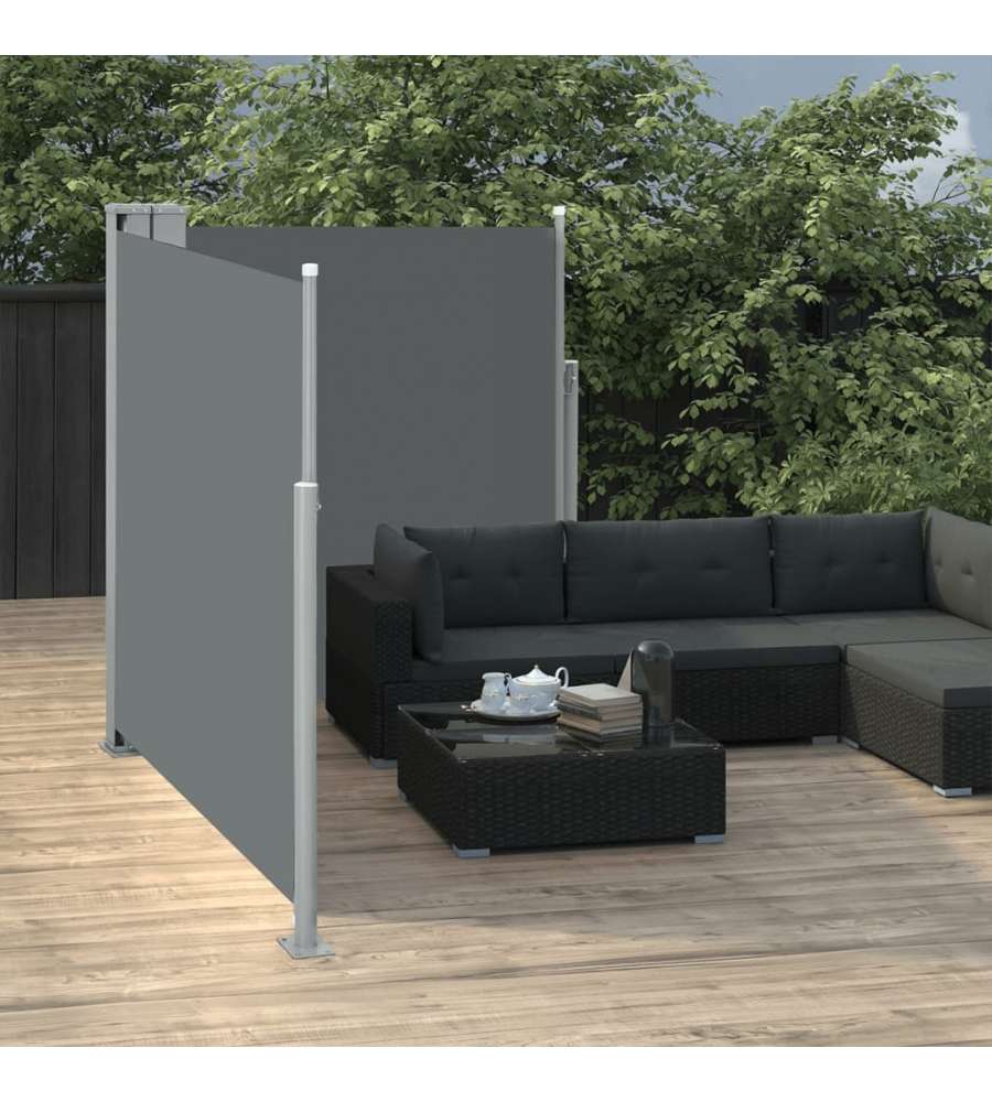 Colore: Tessuto antracite + telaio grigio in acciaio Materiale: Tessuto con rivestimento in PU + copertura in acciaio verniciato a polvere Dimensioni: 170 x 0-600 cm (A x L) Tessuto: 100% poliestere Resistente ai raggi UV e all'acqua