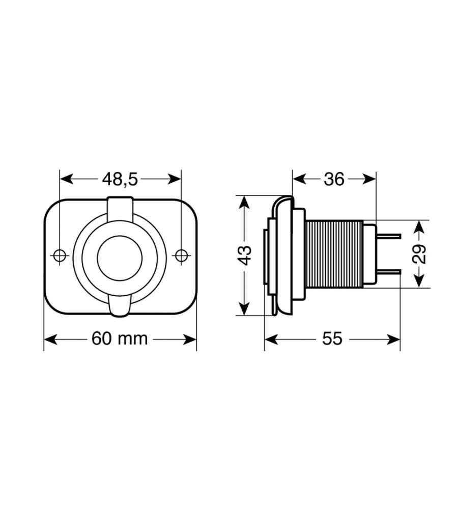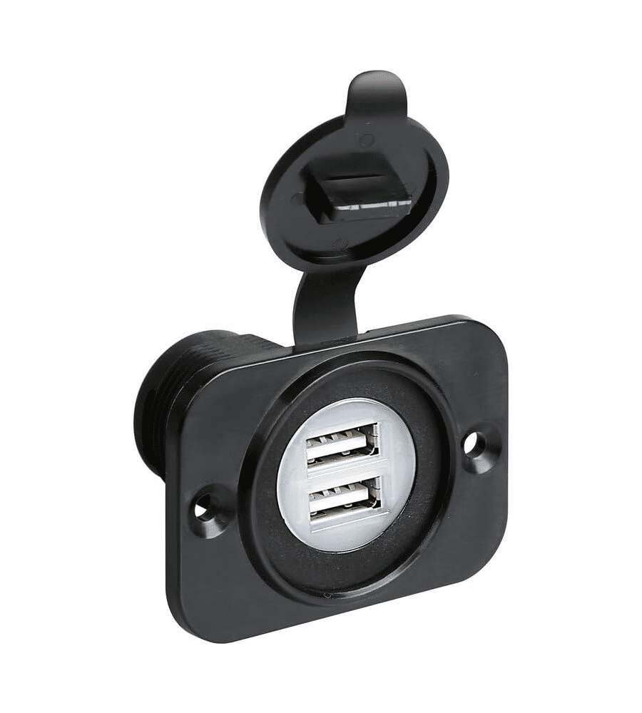 Doppia presa USB montaggio ad incasso, compatibile con alimentazione 12/24V. Utilizzabile sia in interno che esterno, dotata di coperchio di chiusura per maggiore protezione. Dimensioni: 10x15x10 cm, peso 0.06 kg.Volt:
