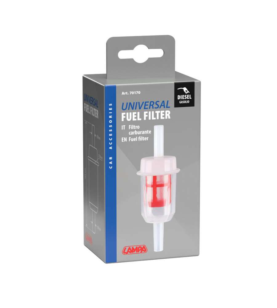 Filtro carburante universale LAMPA 70170 per Diesel, progettato per garantire durata e qualità. Compatibile con vari veicoli, verifica tramite selettore dedicato. Prodotto leggero (0,05 kg) e facile da installare.Destinazione d'uso: