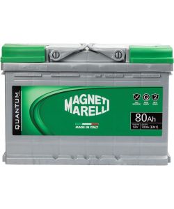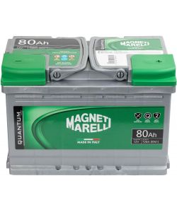 Descrizione: Batteria auto Magneti Marelli Quantum con capacità nominale di 80 Ah e potente avviamento a 720A (EN1). pronta all'uso e senza manutenzione. Testata fino ai -18°, regge anche i climi estremi. Dimensioni compatte: 31 cm x 17.5 cm x 18 cm.