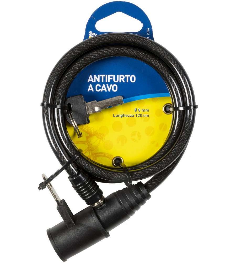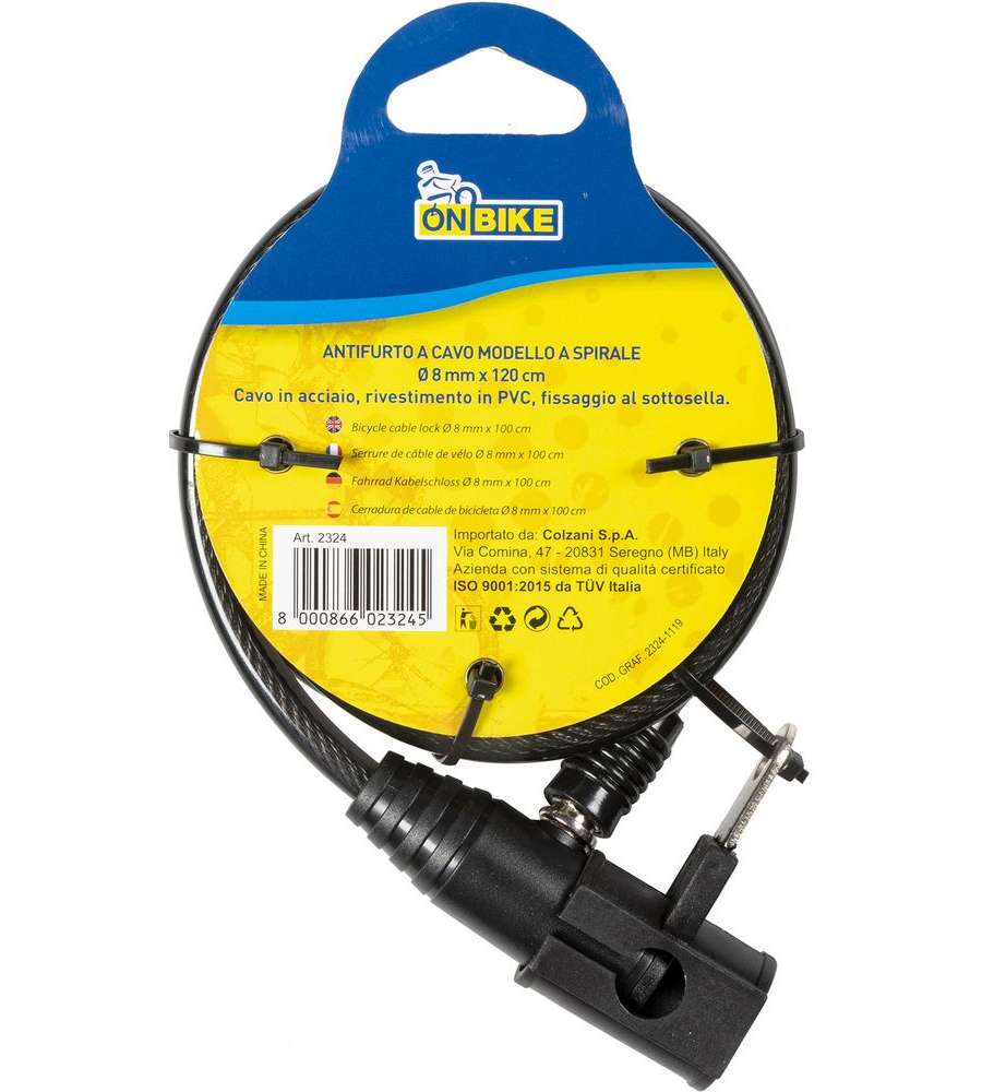 Antifurto cavo a spirale per bici 0,8x120cm aggancio sottosella