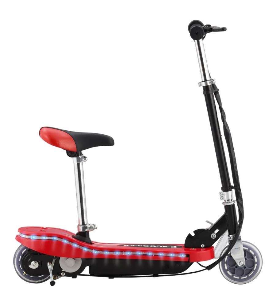 Dotato di una striscia a LED con 3 tonalit? di colore differenti, questo monopattino non risulta solo attraente, ma ? inoltre maggiormente visibile in aree sprovviste di illuminazione.Questo monopattino elettrico funziona fluidamente, ? silenzioso ed ? alimentato da un motore elettrico ecologico. ? dotato di una potente batteria che permette un'autonomia fino ad un'ora (a seconda dello stato di carica). Lo scooter ? dotato di un freno posteriore. Realizzato in alluminio e acciaio, questo scooter elettrico ha una struttura robusta ed ? pieghevole. Il manubrio pu? essere regolato per adattarsi in modo ottimale all'altezza del bambino. Il vostro piccolo potr? sedersi comodamente grazie alla sella in dotazione. Inoltre, l'eccezionale progettazione pieghevole lo rende facile da riporre e trasportare.