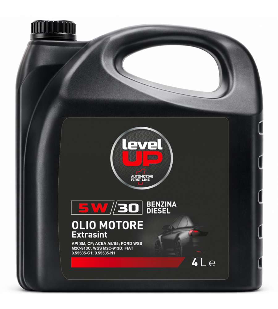 L’olio motore Level Up Extrasint 5W-30 della linea Automotive First Line è un lubrificante ad alte prestazioni formulato per garantire la massima protezione ed efficienza del motore. La sua formula sintetica avanzata è compatibile sia con motori a benzina che diesel, assicurando un'ottima lubrificazione in ogni condizione di guida. Perfetto per i normali intervalli di manutenzione (tagliandi), questo olio contribuisce a mantenere pulito il motore, riducendo l'usura dei componenti meccanici e ottimizzando i consumi di carburante.
