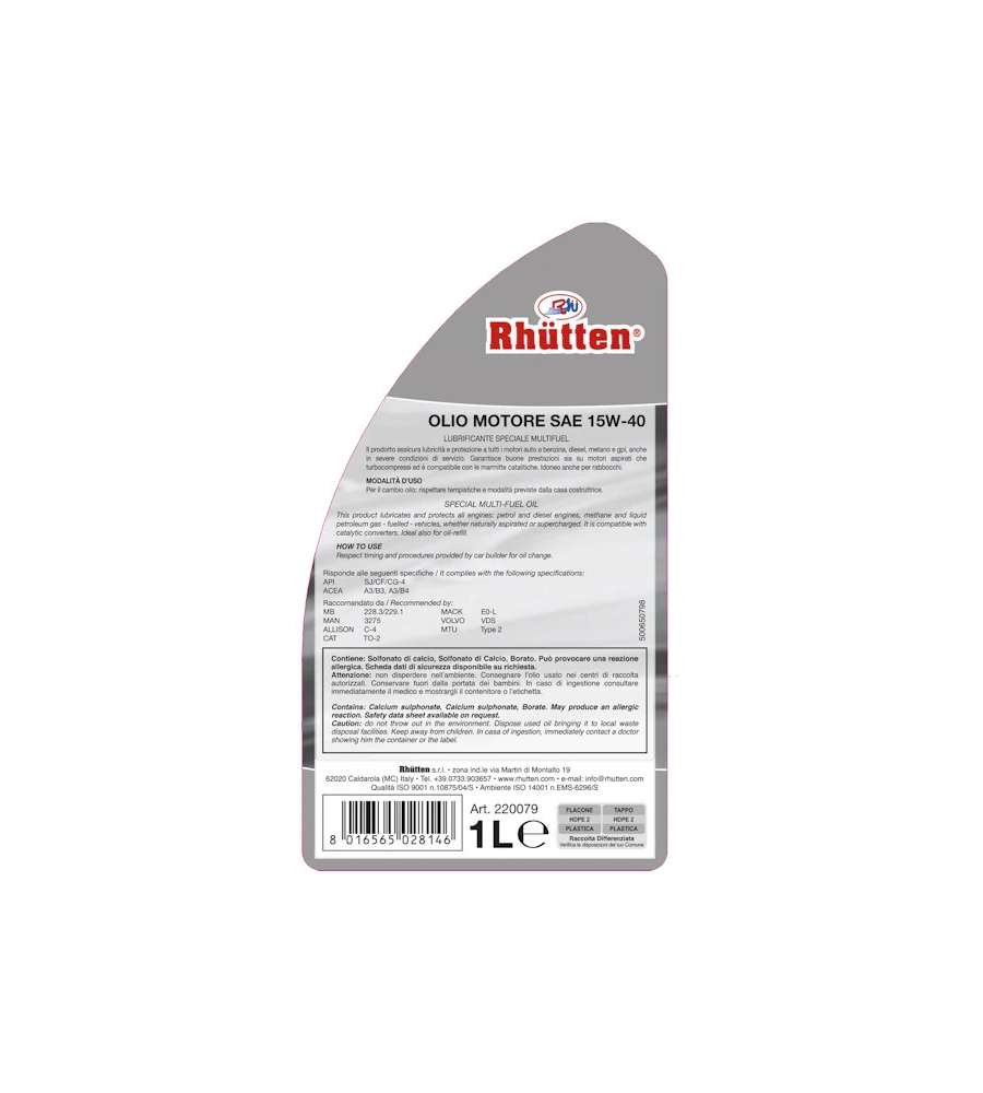Descrizione: Olio motore 15W-40, ideale per garantire prestazioni eccellenti e protezione duratura. Bottiglia da 1L, perfetto per auto e mezzi. Viscosità adatta a diverse condizioni di guida.