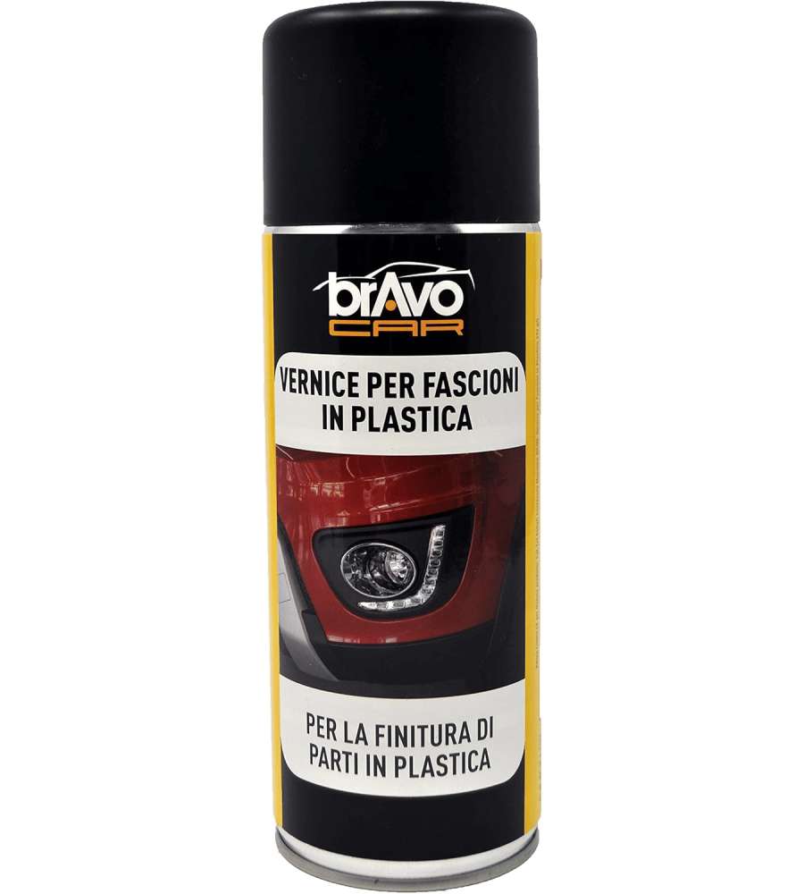 Descrizione: Vernice spray Bravocar per fascioni in plastica, colore nero 400ml. Ottima aderenza su superfici dure come PUR e PS. Applicare a 25 cm per una finitura uniforme e duratura.
