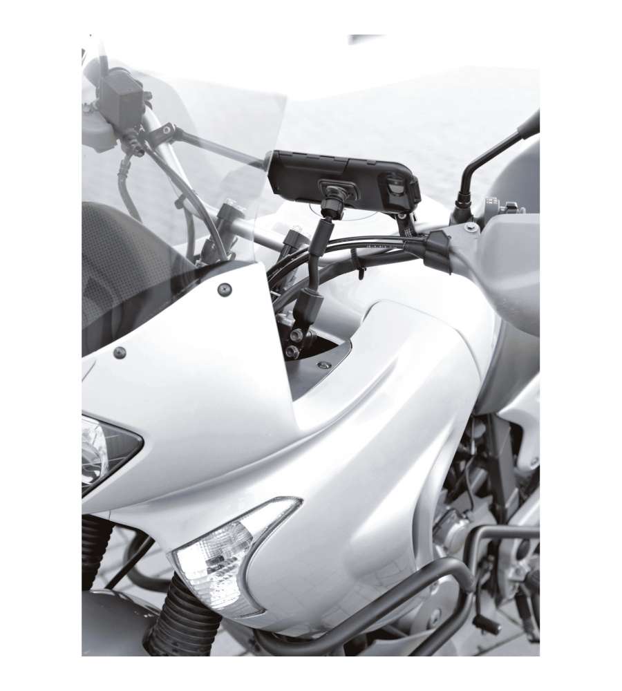 Supporto per smartphone da manubrio compatibile con diametri da 15 a 40 mm. Orientabile per visualizzazione verticale e orizzontale. Specifico per sistema OPTI- by Lampa. Realizzato in plastica, leggero (85 g), dimensioni compatte.Destinazione d'uso: