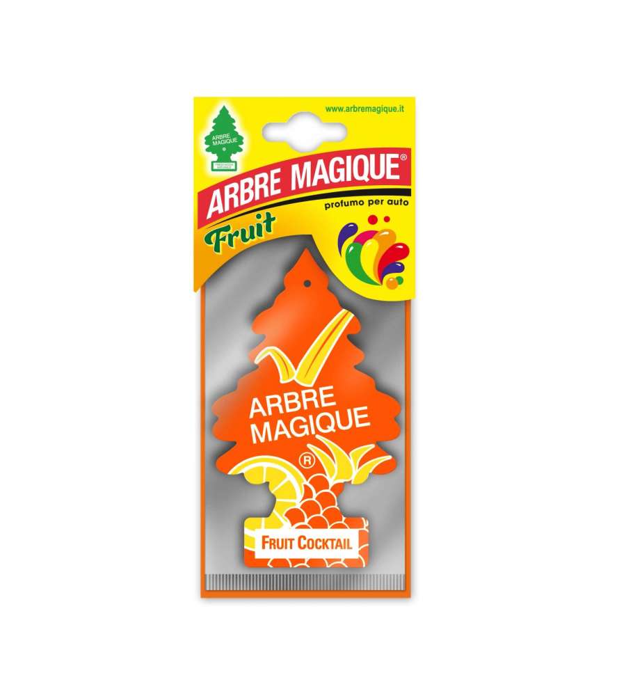 Deodorante per auto Arbre Magique con fragranza Fruit Cocktail. Realizzato in pura cellulosa, garantisce freschezza fino a 7 settimane. Facile da usare e sicuro, è il compagno ideale per ogni viaggio. Design pratico e accattivante.Made in Italy: