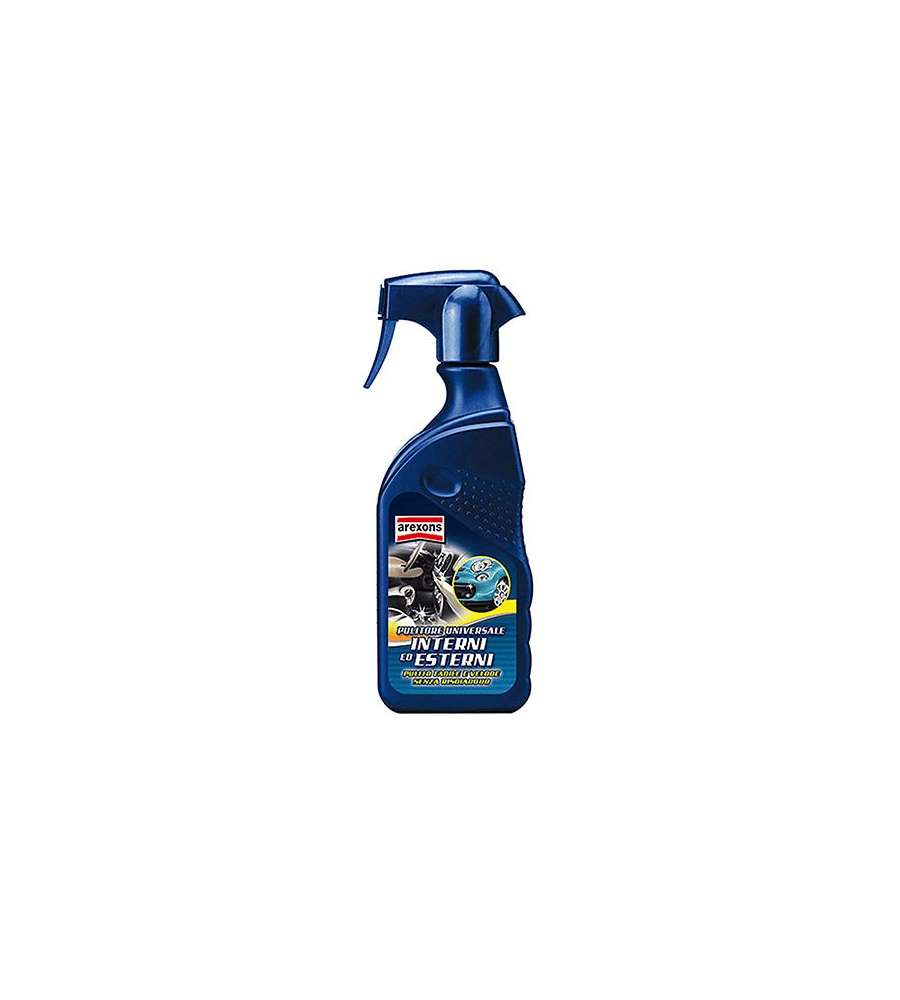 Pulitore universale Arexons 500ml, ideale per interni ed esterni auto. Rimuove polvere e macchie senza risciacquo, con effetto antistatico e profumo di limone. Sicuro su plastiche, vetro e metallo, flacone con spray ergonomico.Confezione: